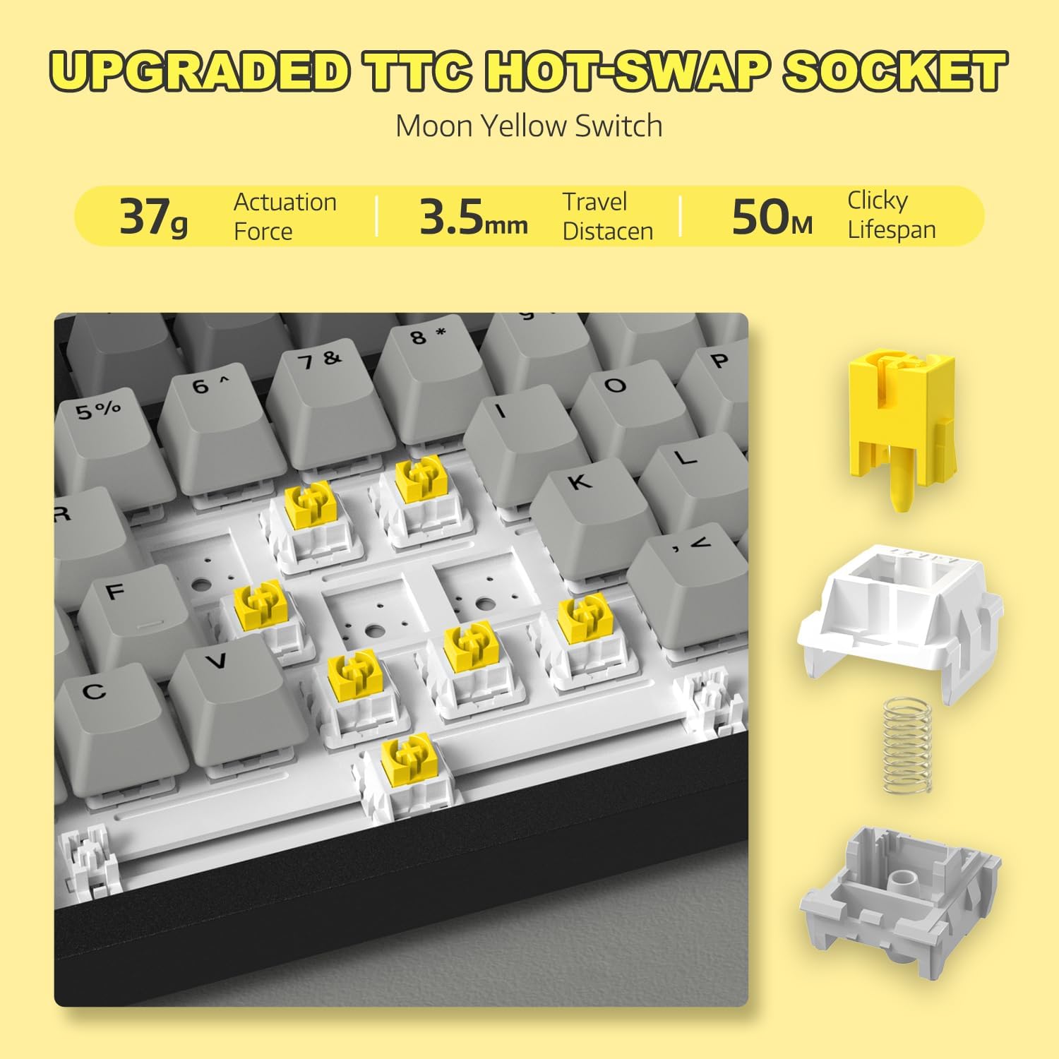 ⭐【Konstrukcja z możliwością wymiany podczas pracy】Ergonomiczna klawiatura z możliwością wymiany podczas pracy, żywotność 50 milionów naciśnięć zapewnia długą żywotność i stabilność klawiatury. 3/5-pinowa konstrukcja do montażu na płytce drukowanej zapewnia użytkownikom łatwy montaż i demontaż. Taka konstrukcja zwiększa łatwość konserwacji i rozbudowy klawiatury, umożliwiając łatwiejsze dostosowanie konfiguracji do osobistych potrzeb w trakcie korzystania z klawiatury.