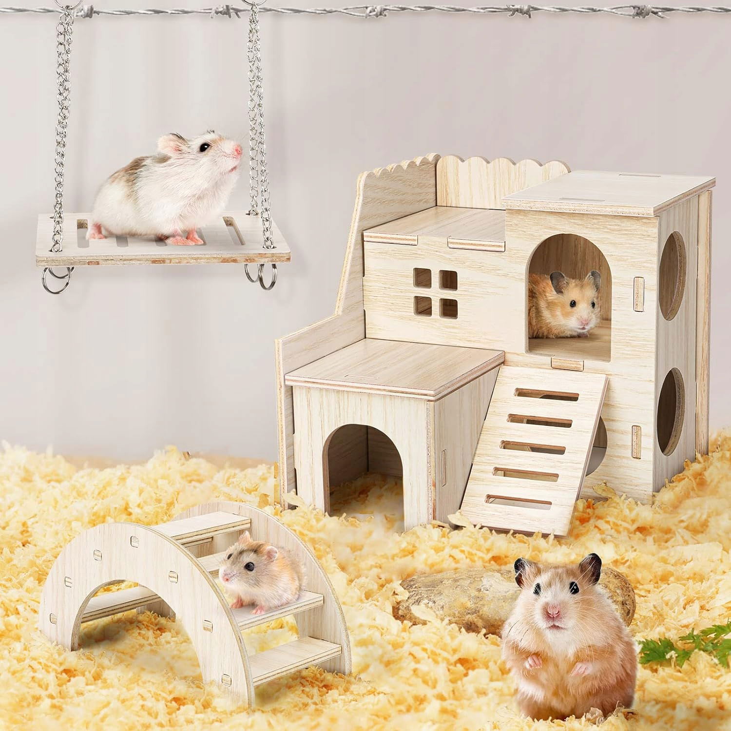 Dzięki różnym elementom, takim jak huśtawki, most czy gniazda, chomik może eksplorować, trenować i bawić się, co przekłada się na jego zdrowie psychiczne i fizyczne.