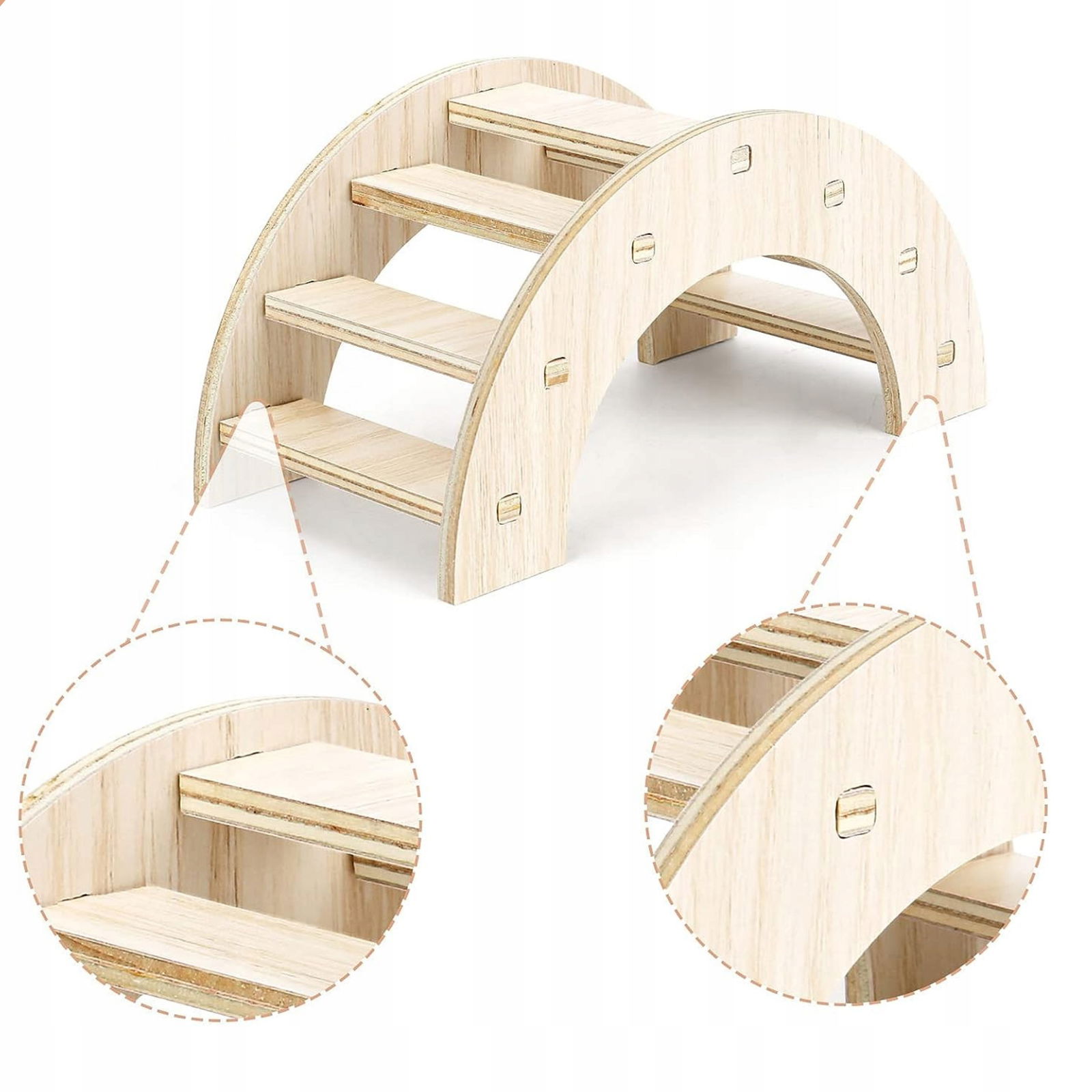 Domki są wyposażone w kilka okrągłych otworów, które umożliwiają pełną eksplorację małym zwierzątkom. tj.myszoskoczki, chomiki syryjskie, chomiki dżungarskie, szynszyle