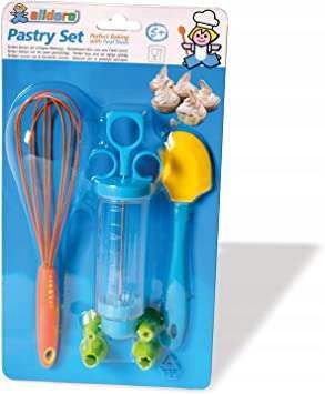 Zestaw idealny dla każdego małego pomocnika w kuchni, świetnie imitujący prawdziwe przybory kuchenne. Każdy mały kucharz udekoruje ciasta razem z mamą lub tatą.
