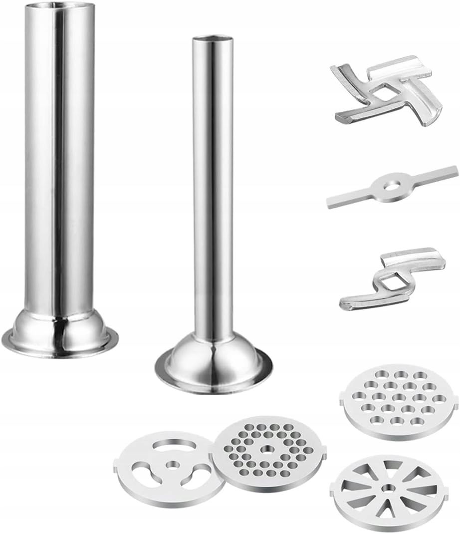 Gdrtwwh Akcesoria do maszynki do mielenia mięsa odpowiednie dla wszystkich maszyn kuchennych Kenwood i kMix, z 2 rurami do kiełbasy i 4 talerzami do mielenia
