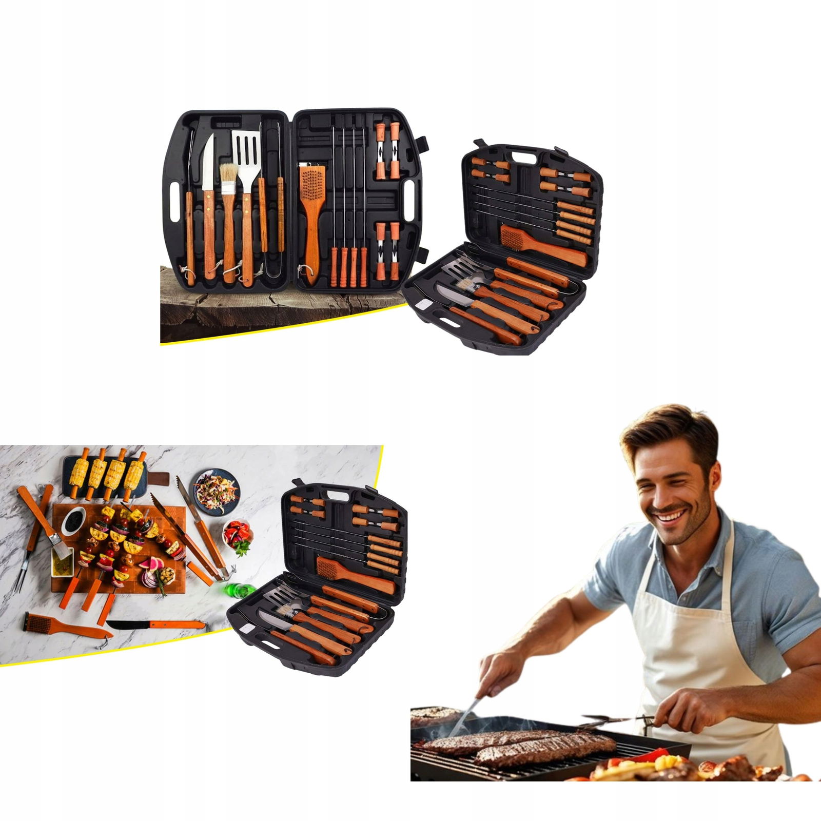 - w walizce sztućce do grillowania bbq