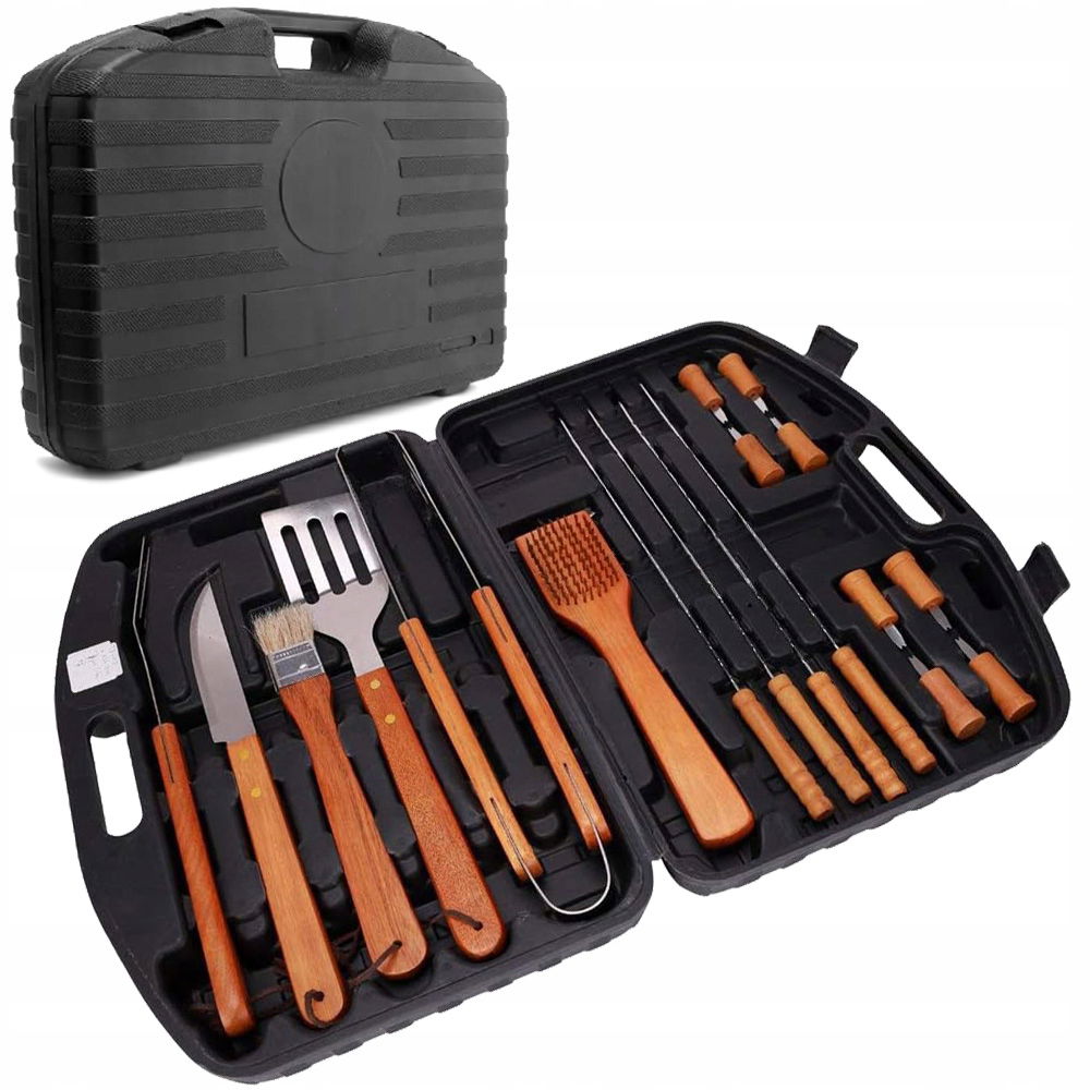 ♨️AKCESORIA PRZYBORY DO GRILLA UNIWERSALNE WSZECHSTRONNE ZESTAW ETUI 18 SZT