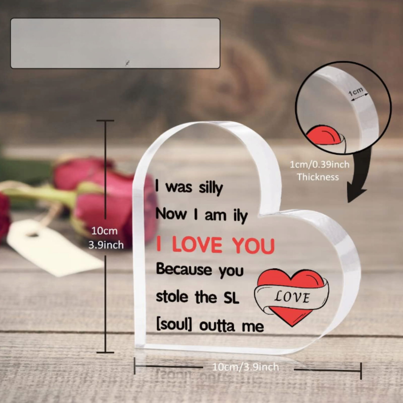 ?Wyjątkowy Upominek: Ta piękna, akrylowa plakietka w kształcie serca to doskonały sposób na wyrażenie uczuć. Idealny prezent na urodziny, Walentynki, Święta, czy inne wyjątkowe okazje. Z pewnością wywoła uśmiech na twarzy Twojego ukochanego.