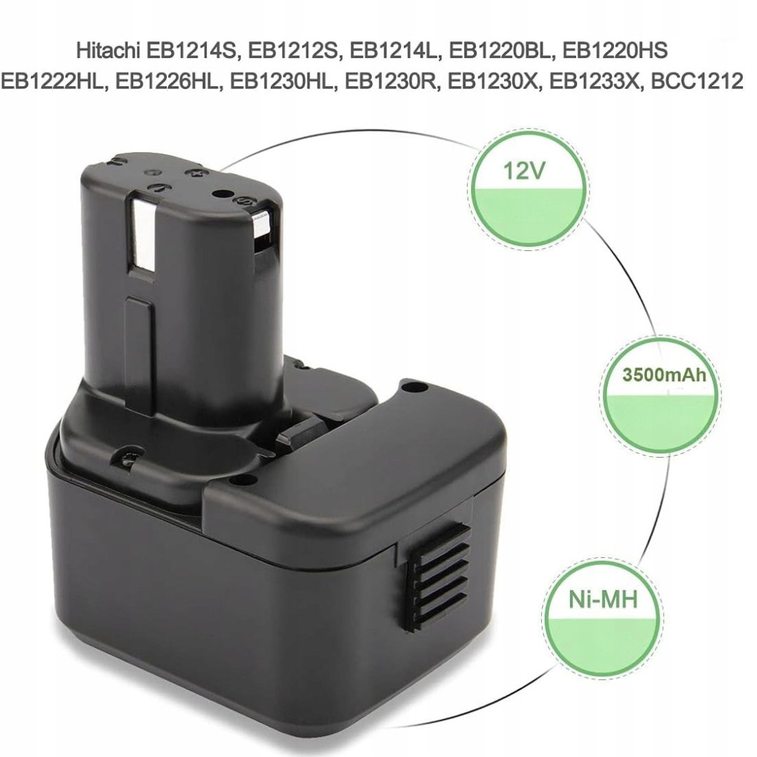 23Akumulator wysokiej jakości 12V Hitachi EB1212S o pojemności 3500 mAh wykonany w technologii Ni-MH jest w pełni kompatybilny z oryginalnymi bateriami Hitachi EB1212S, EB1214L, EB1214S, EB1220BL oraz modelami C 5D, CD 4D, CL 13D, DB 12DM2, EB1230R, EB1230X i EB1233X.