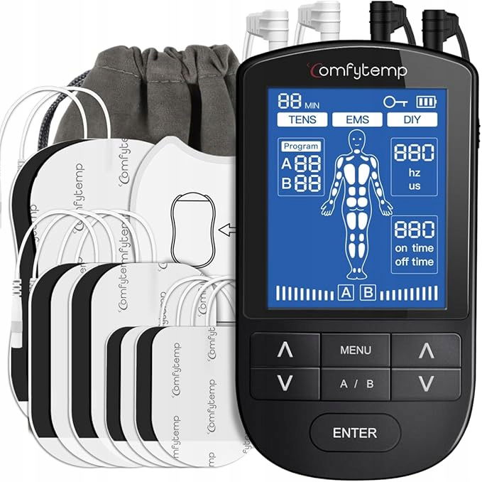 Maszyna TENS/EMS Comfytemp to nowoczesne urządzenie przeznaczone do skutecznego łagodzenia bólu mięśniowego, które łączy funkcje elektrostymulacji mięśni (EMS) i przezskórnej elektrostymulacji nerwów (TENS). Urządzenie oferuje szereg opcji, które umożliwiają dostosowanie terapii do indywidualnych potrzeb użytkownika. Dzięki czterem niezależnym kanałom, 24 wstępnie ustawionym trybom oraz trybowi DIY, Comfytemp zapewnia profesjonalne leczenie bólu w domu, bez konieczności sięgania po leki.
