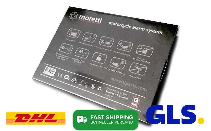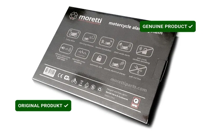 Spotkasz także pod nazwą: Alarm uniwersalny do motocykla i skutera, zdalny immobilizer, zdalny zapłon, automatyczne uzbrajanie, Moretti Parts