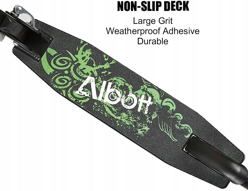 SOLIDNY I TRWAŁY: Hulajnoga Albot jest wykonana z wytrzymałego aluminium lotniczego z antypoślizgowym, pogrubionym pokładem, obsługuje użytkowników o wadze do 100 kg. Wystarczająco wytrzymały, aby wytrzymać użytkowanie i nadużycia przez lata.