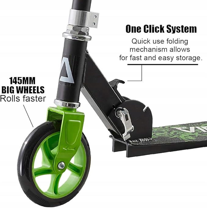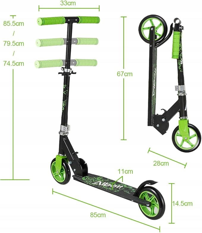 HULAJNOGA Z REGULACJĄ WYSOKOŚCI: Kierownica ma 3 opcje regulowanej wysokości (74,5 / 79,5 / 85,5 cm). Możesz regulować wysokość tej hulajnogi, gdy dzieci są starsze, i nie musisz ciągle kupować nowych hulajnóg. Zalecany dla dzieci od 5 roku życia. MIĘKKIE I NIEZAWODNE: 145 mm wysokie koła PU z łożyskami ABEC-5 zapewniają płynniejszą jazdę, dzięki czemu nadają się do wielu rodzajów nawierzchni. Gumowa rączka jest przyjazna dla skóry i wygodna dla dzieci. Czuły tylny hamulec zapewnia niezawodne i bezpieczne zatrzymanie podczas jazdy.