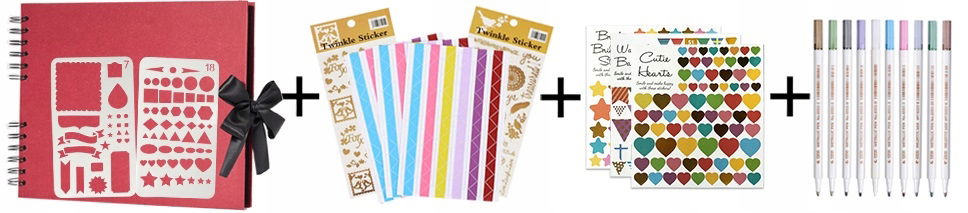- album z akcesoriami do przyozdobiania zdjęć