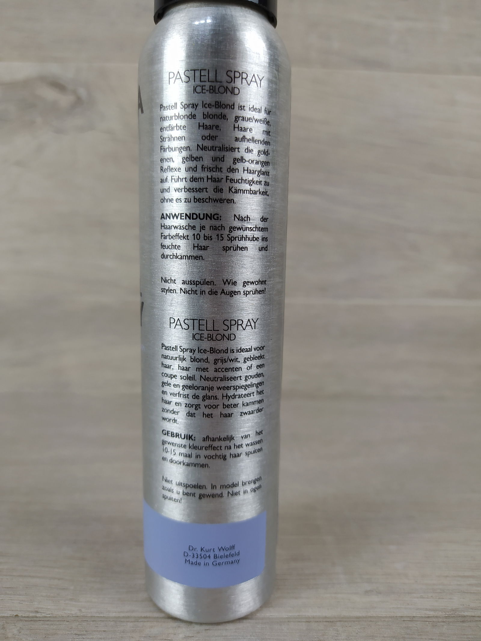 Spray do włosów Pastell Spray Ice-Blond nadaje się idealnie do włosów w kolorze naturalny blond, szarych/siwych, włosów po dekoloryzacji, włosów z pasemkami oraz włosów rozjaśnianych. Neutralizuje złote, żółte i żółto-pomarańczowe refleksy oraz przywraca włosom blask. Nawilża włosy i ułatwia ich rozczesywanie, bez obciążania.