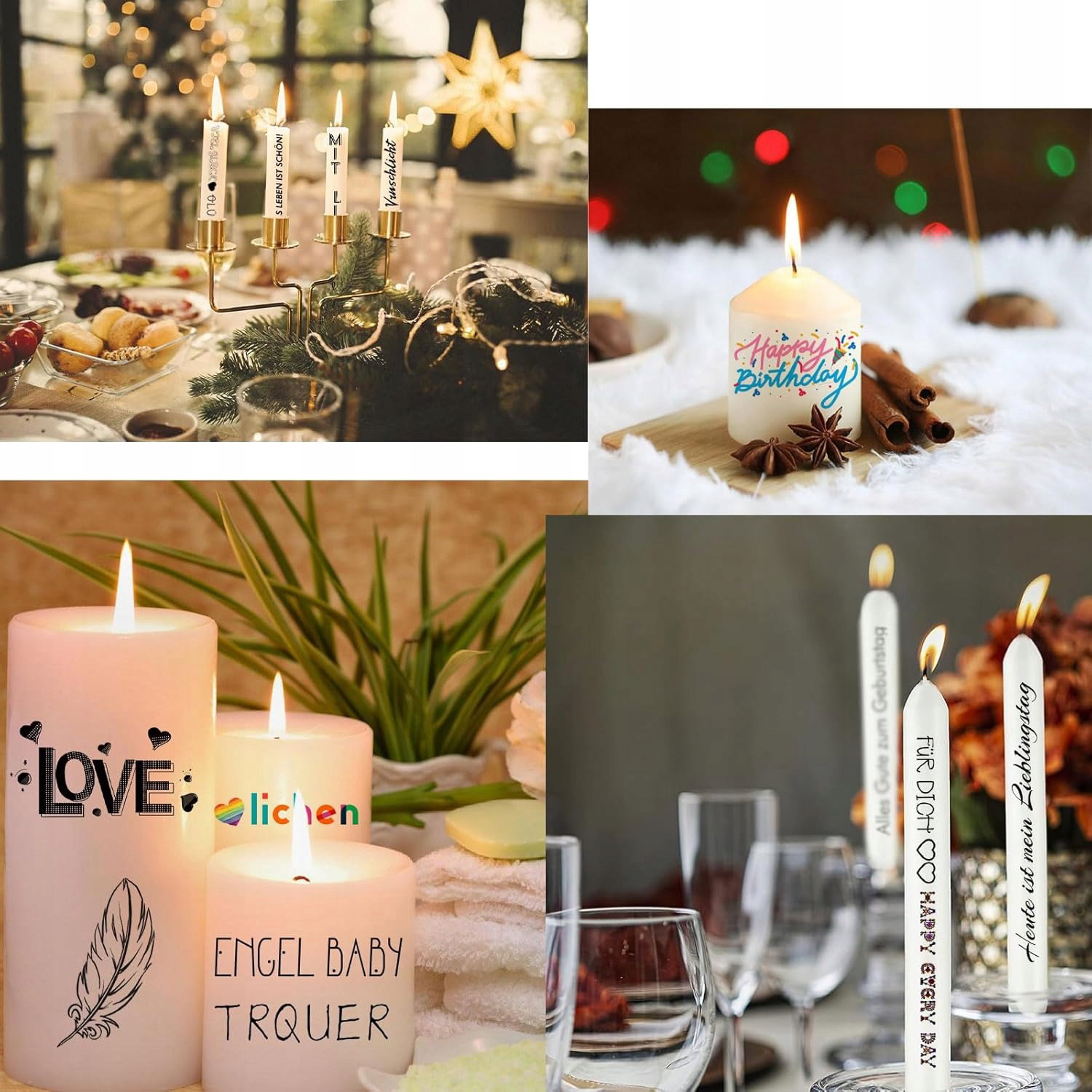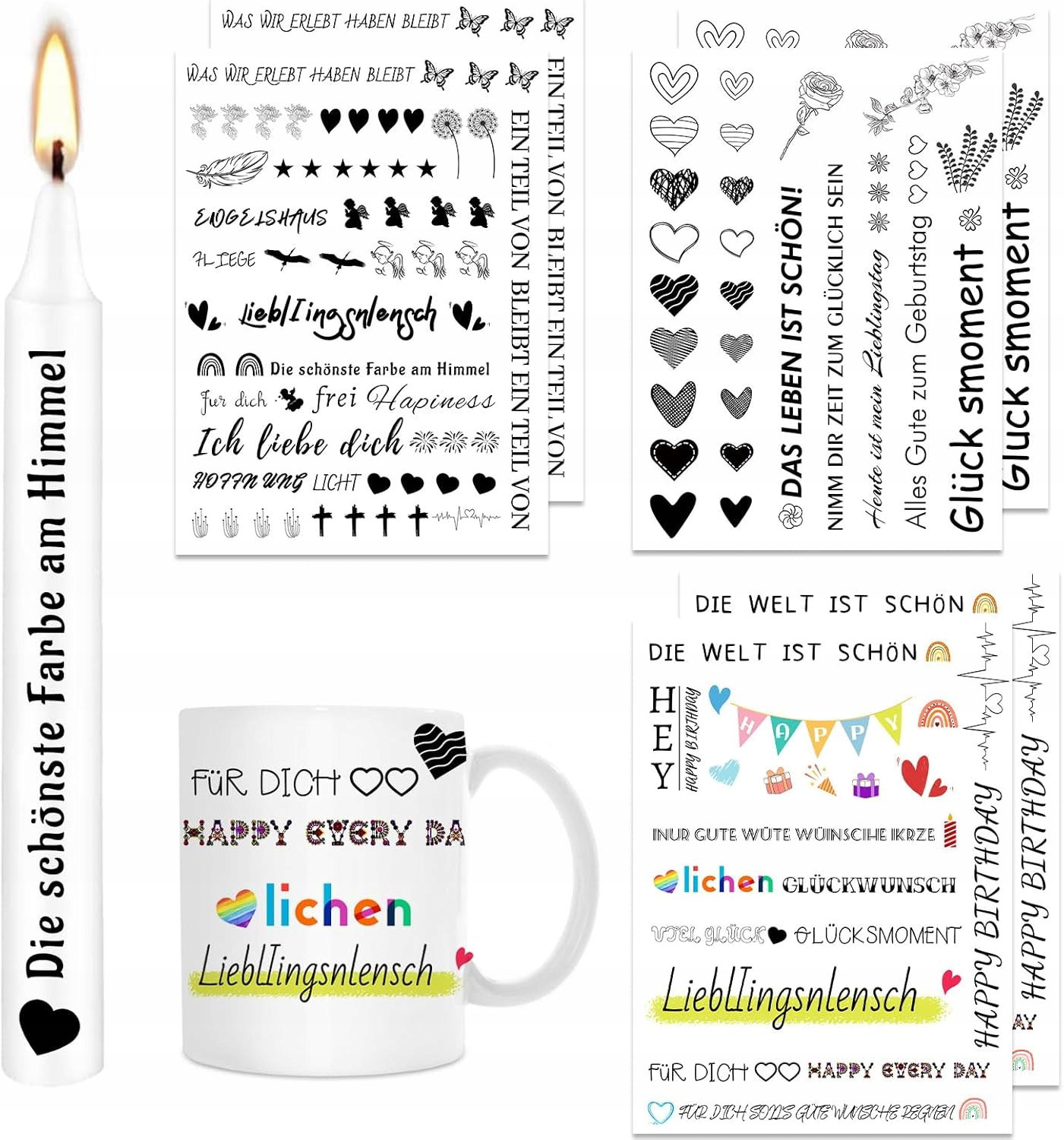 ️Ten produkt nie zawiera świec; powiedzenia i motywy naklejek na świece, które otrzymasz, są odbite lustrzano. Po przyklejeniu folii do tatuażu na świecy wszystko będzie w porządku.