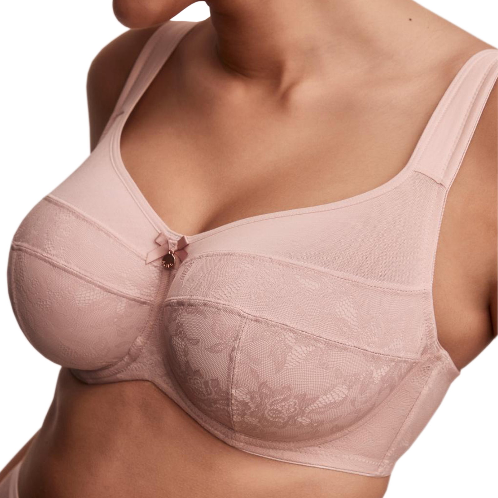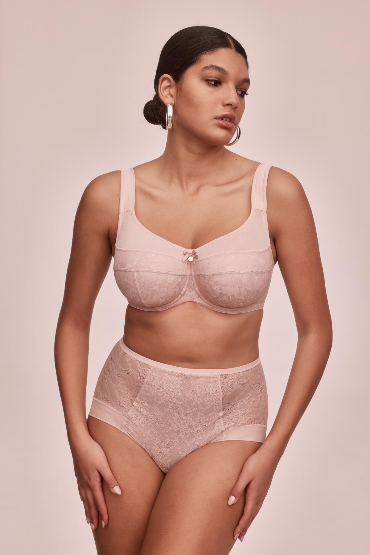 Miseczki okryte koronkowym plenem z lirycznym kwiatowym wzorem, umieszczonym na miłej w dotyku, gładkiej tkaninie to oszczędne i subtelne podkreślenie kobiecości. Wysoko zabudowane – posiadają górną krawędź wykonaną z gęstej, lekko prześwitującej siateczki. Konstrukcja w kroju FULL-CUP jest wsparta na ramiączkach szerszych z przodu i podszytych warstwą miękkiej gąbeczki, dzięki czemu zapewniają niespotykany komfort użytkowania.