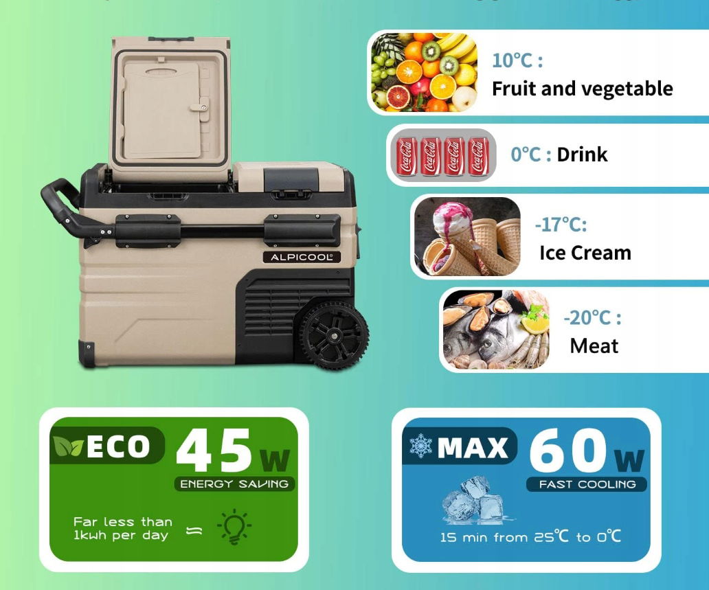 - ✴️Wydajne chłodzenie, wyjątkowa oszczędność energii: Lodówka samochodowa TAW35 może osiągnąć najniższą temperaturę do -20°C dzięki wydajnemu kompresorowi i posiada dwa tryby pracy: MAX i ECO. Średnie zużycie energii w trybie ECO wynosi znacznie mniej niż 1 kWh dziennie, co oznacza wyjątkową oszczędność energii.