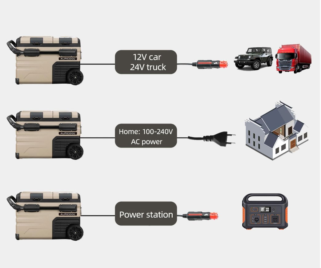 - ✴️Wszechstronne zastosowanie. Lodówka jest wyposażona w kable DC i AC, aby sprostać potrzebom zarówno na zewnątrz, jak i wewnątrz budynków. Nadaje się na różne okazje, takie jak jazda autonomiczna, piknik, kemping czy grill.