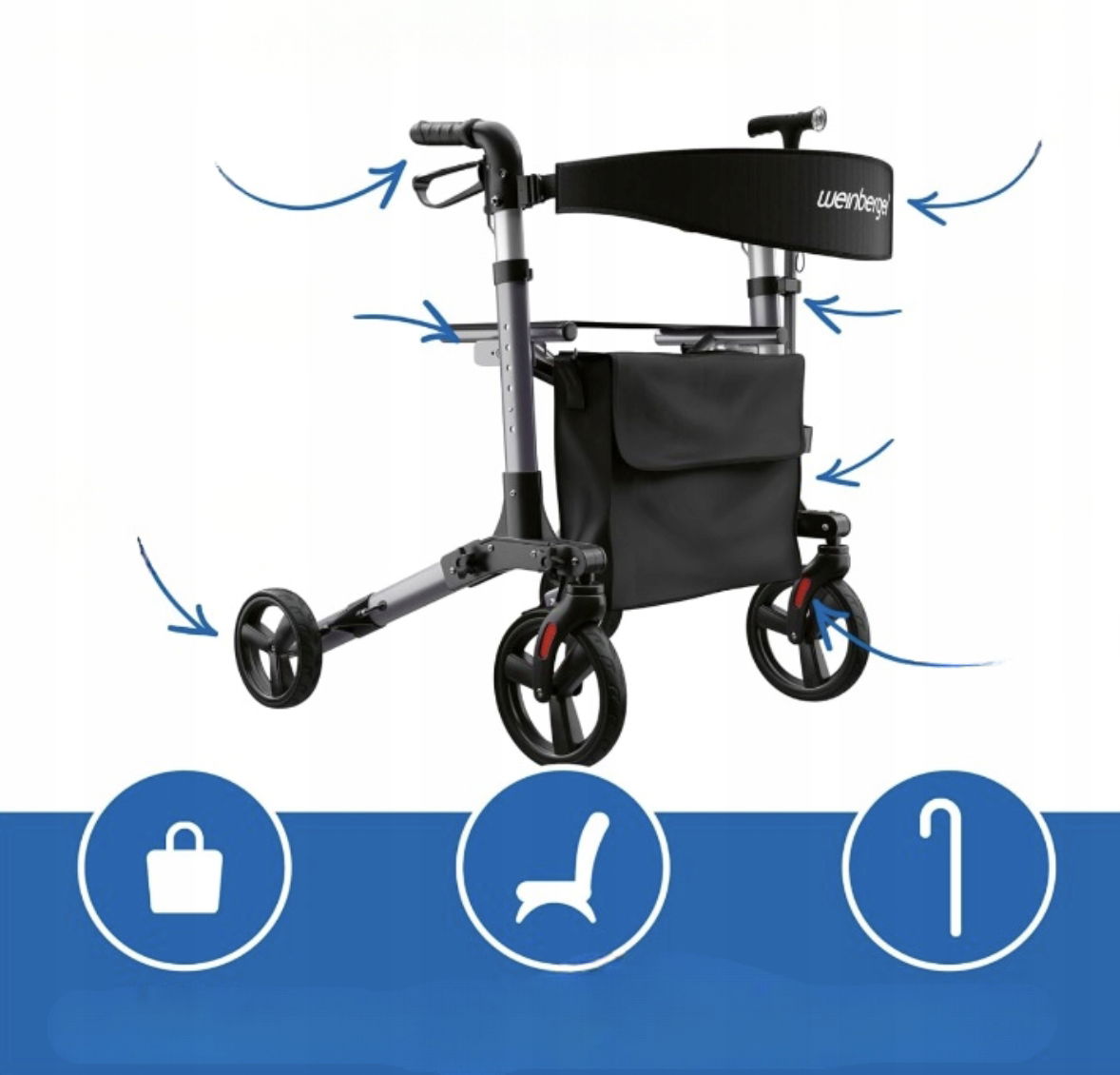 Rolator Weinberger 02394 to nowoczesne wsparcie w poruszaniu się dla dorosłych, którzy cenią sobie mobilność, bezpieczeństwo i łatwość użytkowania.