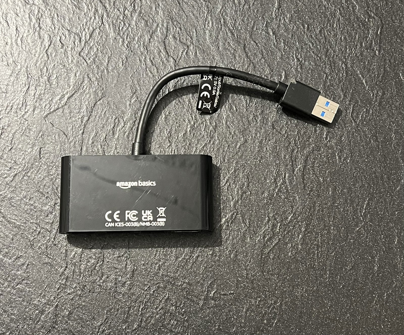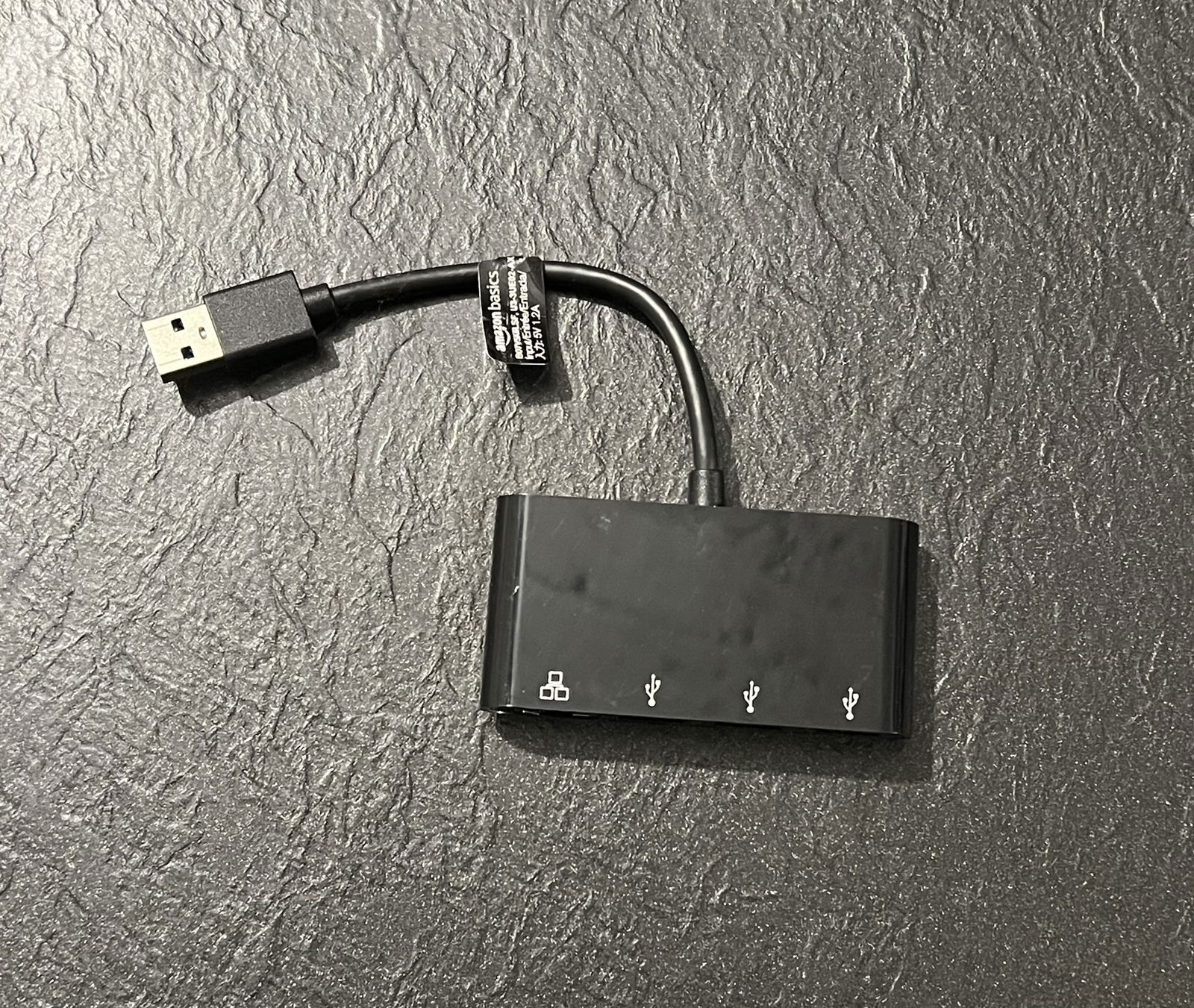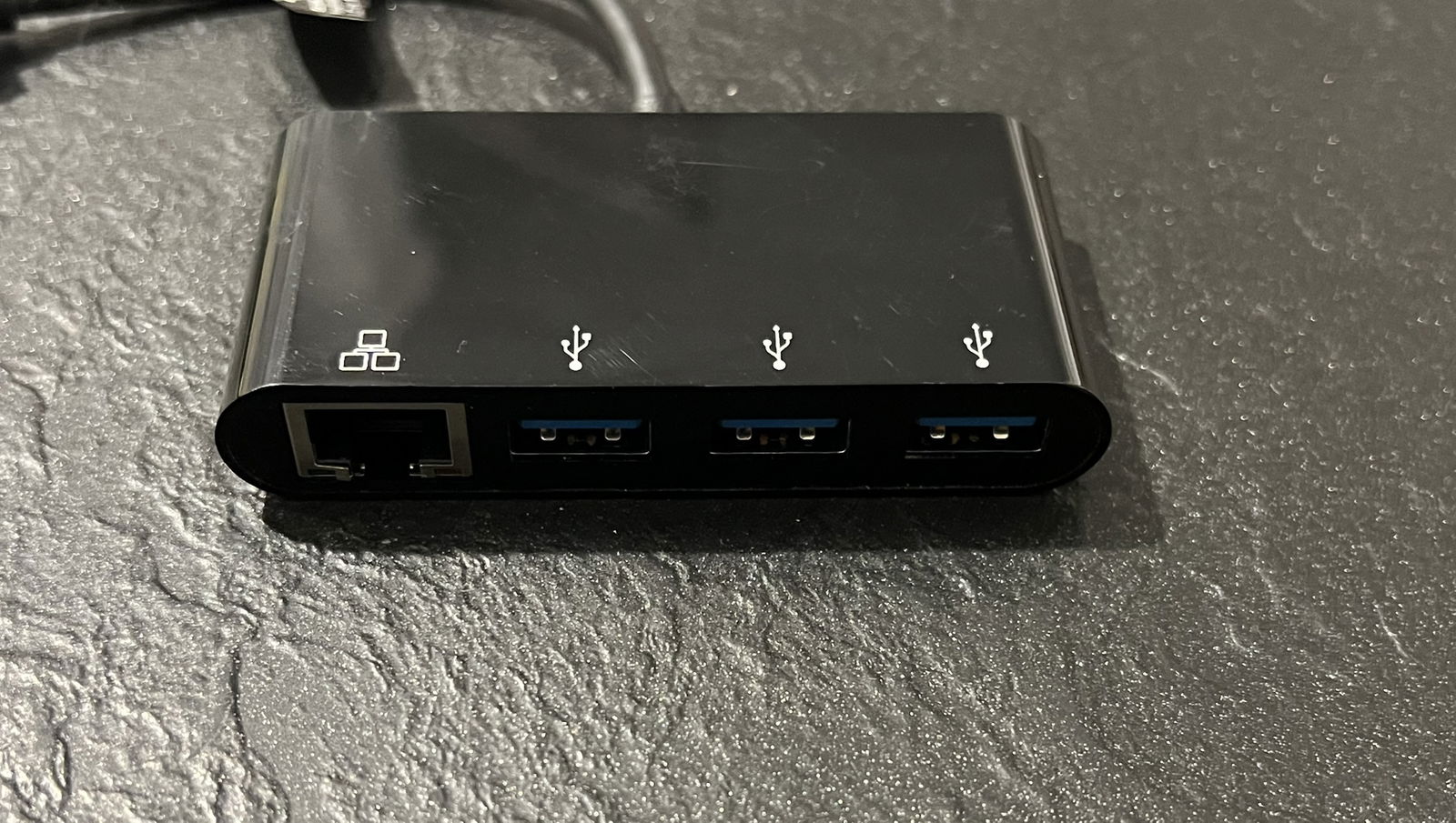 Adapter z 3 portami USB 3.0 i 1 portem Gigabit Ethernet do podłączania do komputera, laptopa lub innych urządzeń.