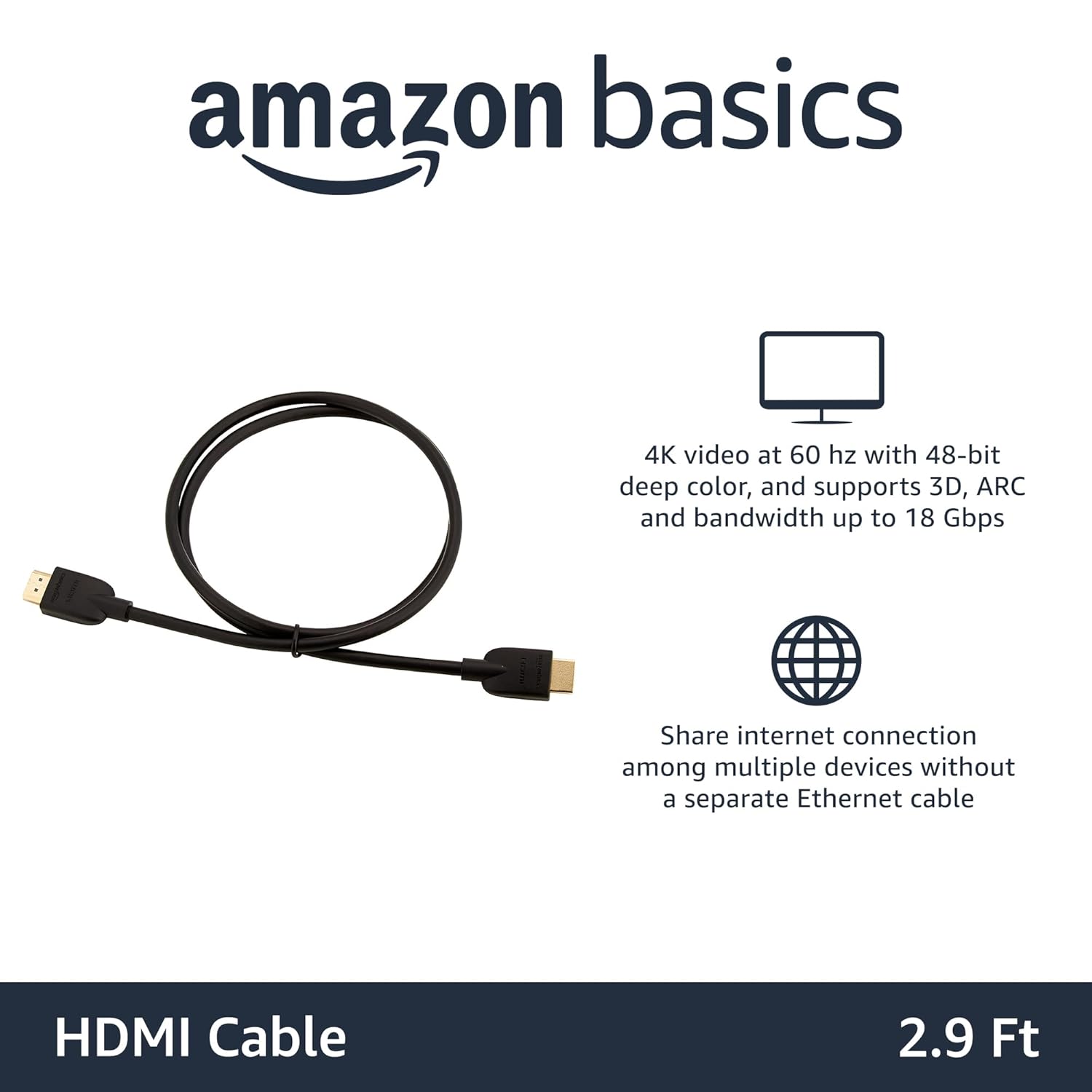 Amazon Basics Kabel HDMI, High Speed 18 Gb/s, 4K60 Hz, 2160p, obsługuje Ethernet, 0,9 m, czarny