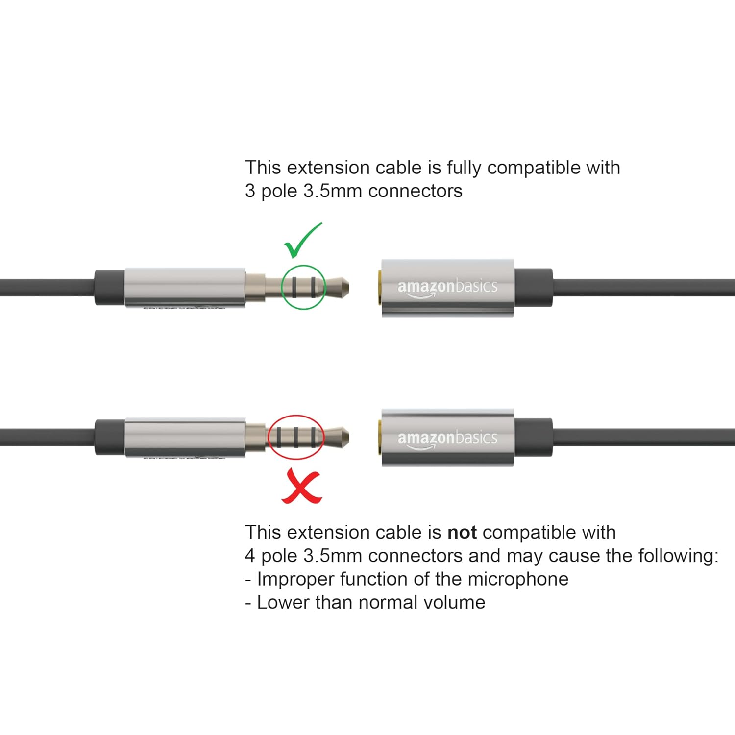 Amazon Basics Przedłużacz audio jack 3,5 mm, męski na żeński, adapter do słuchawek lub smartfona, 7,6 m, czarny