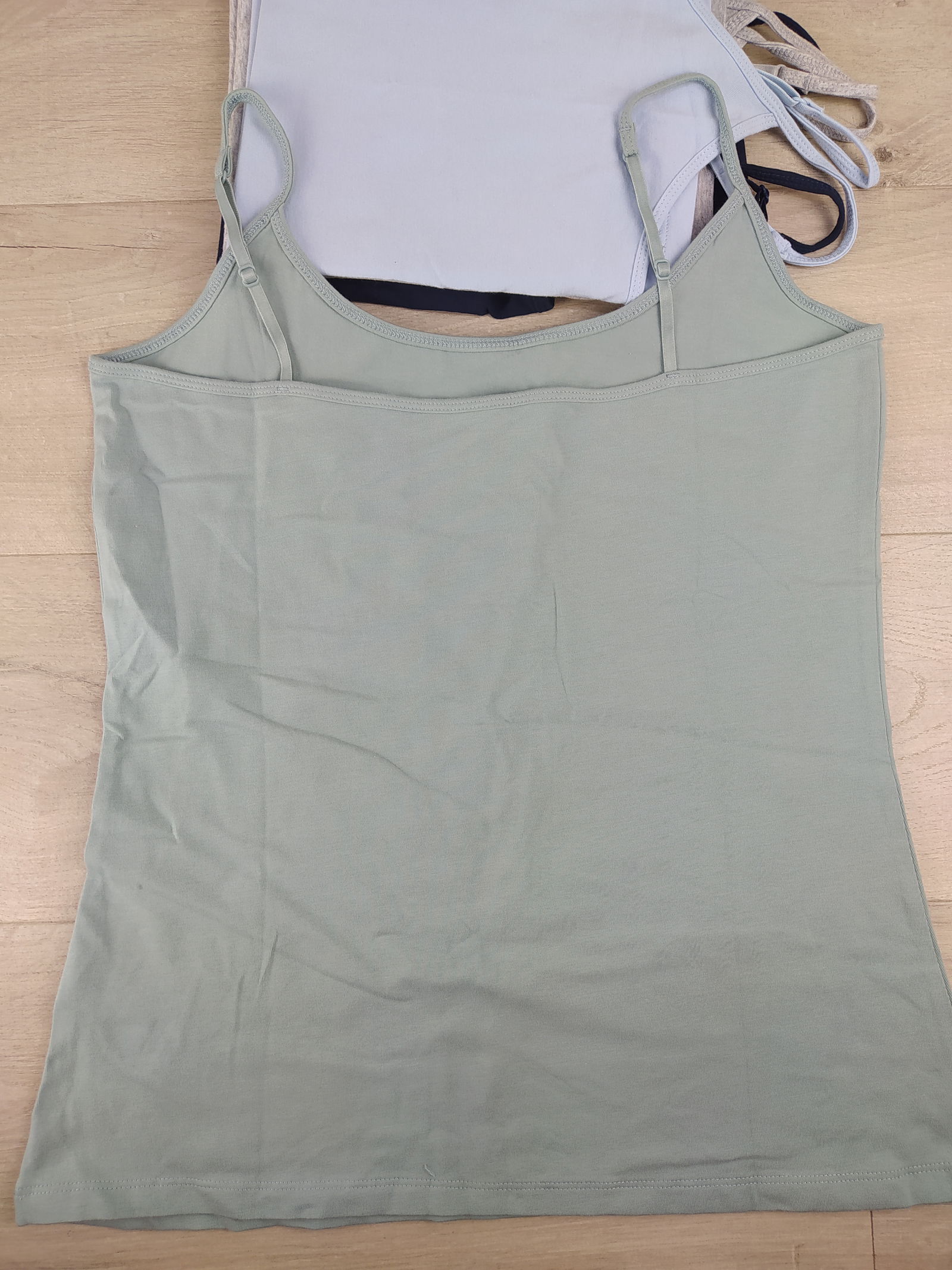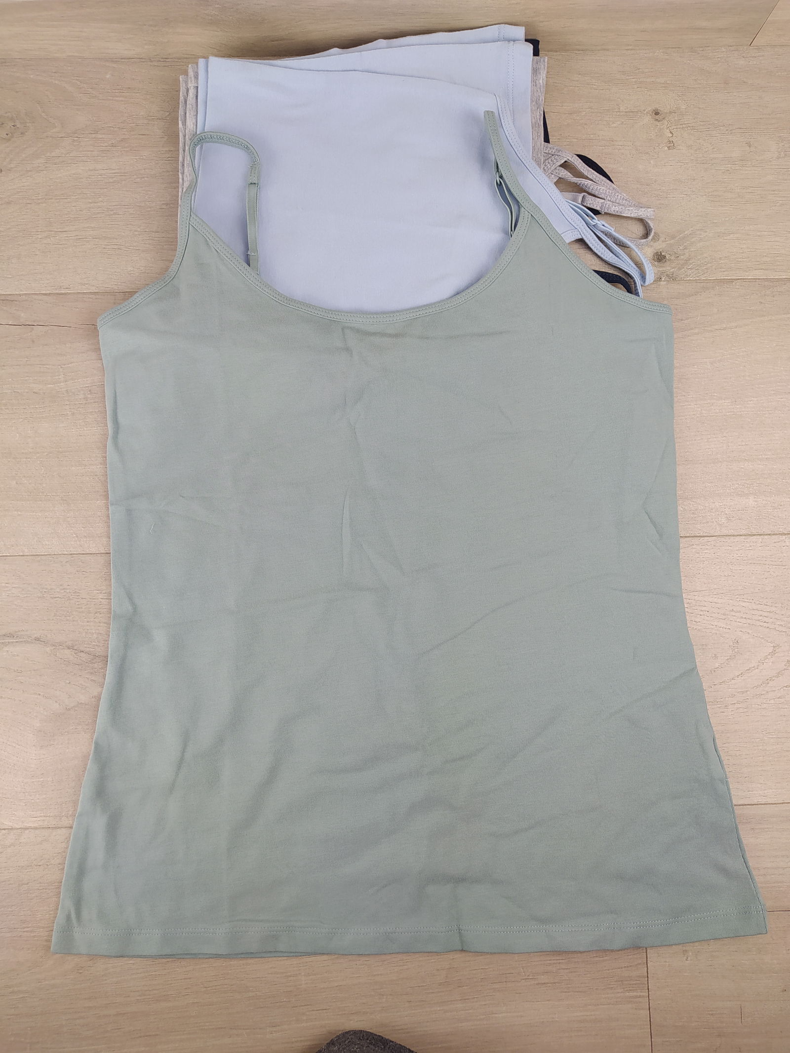 Top posiada cienkie ramiączka, prosty krój i neutralny design, dzięki czemu świetnie sprawdza się jako bielizna, podkoszulek lub lekki top do codziennych stylizacji. Zestaw zawiera 4 sztuki w różnych kolorach, co czyni go praktycznym wyborem na każdy dzień.
