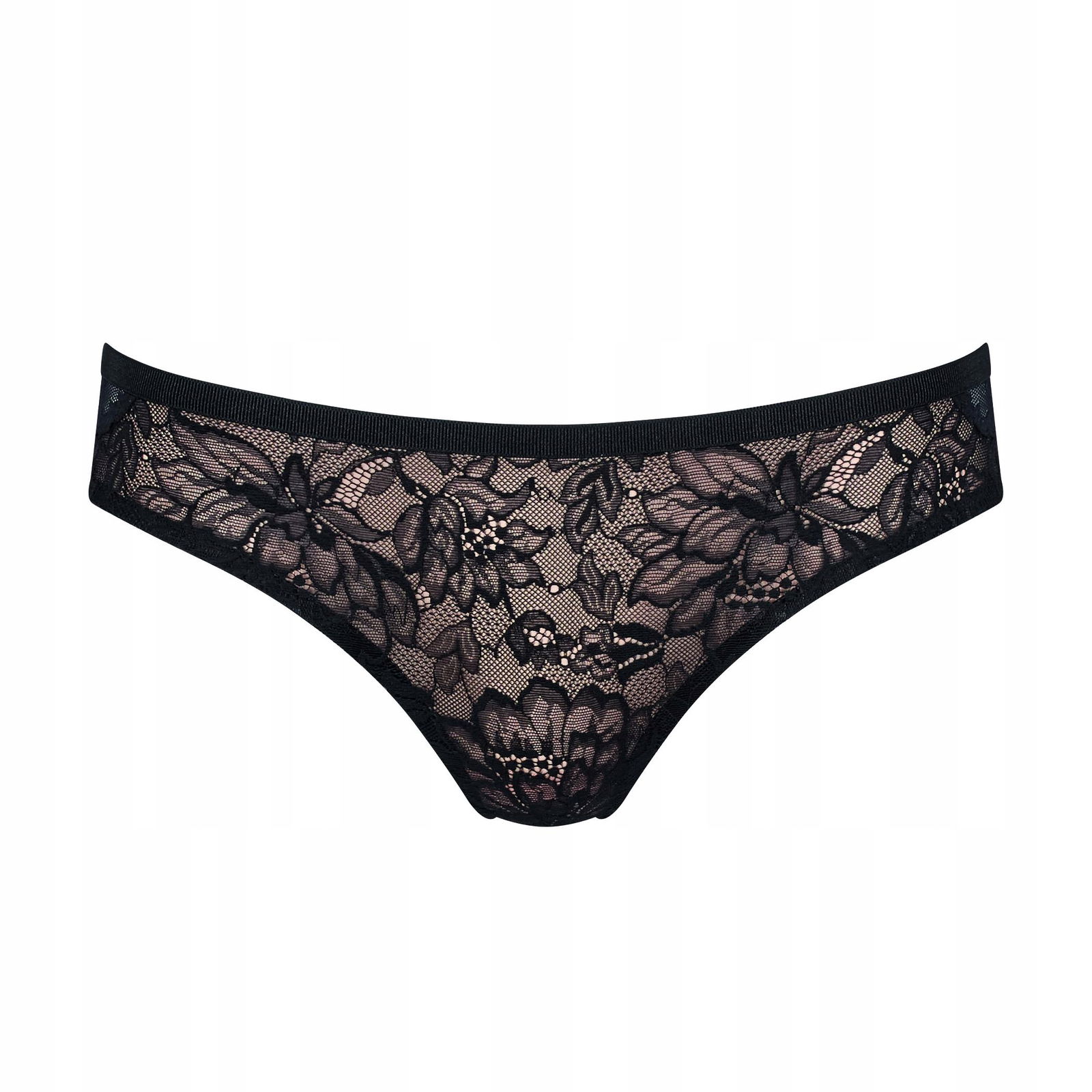 Majtki o modnym kroju Brazilian. Przód i tył wykonany z podwójnej warstwy tiulu, wykończonej szerokim pasem koronki. Model pięknie podkreślający pośladki z bestsellerowej kolekcji Amourette Charm.