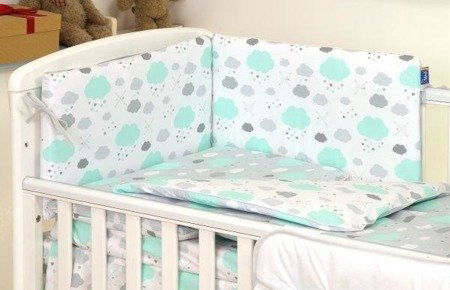 2. OCHRANIACZ o długości 180 cm idealnie wpasuje się do do łóżeczka 120×60 cm . Całość ochraniacza ma wystarczająca długość dla zachowania bezpiecznego snu dziecka. Ochraniacz posiada odpowiedni system mocowań, dzięki któremu można solidnie i stabilnie mocować go do łóżeczka. Ich dobrze dobrana długość pozwala zachować pewność, że maluszek nie odwiążę i nie owinie się trokami. Wypełnienie znajdujące się wewnątrz ochraniacza to hipoalergiczna ocieplina Baby Soft, o odpowiedniej grubości i sprężystości, które chroni dziecko przed uderzeniami. System RealWash umożliwia wyjęcie wkładów i wypranie samych poszewek bez utraty walorów użytkowych wypełnień (ich puszystości i przewiewności).