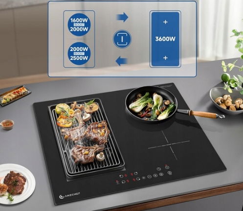- ✴️【2 w 1, elastyczne strefy gotowania】Płyta indukcyjna Amzchef o szerokości 60 cm oferuje cztery strefy gotowania, z których można korzystać niezależnie. Dwa palniki można również połączyć, tworząc jedną, rozszerzoną strefę grzewczą. Elastyczne strefy są przeznaczone do dłuższych garnków i patelni, dając Ci swobodę grillowania z większą elastycznością!