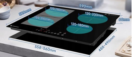 Amzchef płyta indukcyjna 60 cm, 4 strefy, 9 poziomów mocy, 7200 W, FlexZone