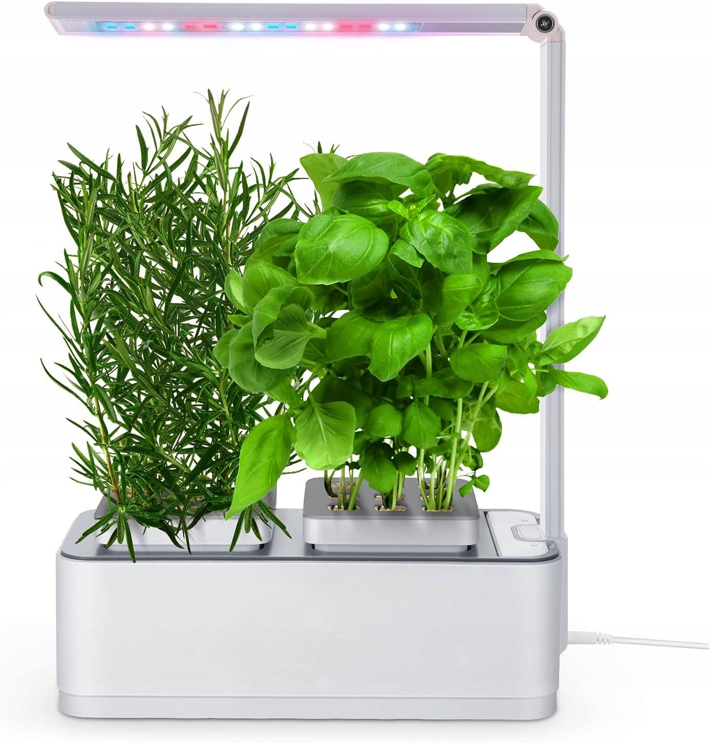 Nowoczesna hydroponiczna doniczka amzWOW Clizia Smart Garden to kompletny system do uprawy ziół i roślin w domu. Z białą obudową, lampą LED 8 W z automatycznym timerem oraz funkcją automatycznego nawadniania — idealny do kuchni, biura lub salonu. Zamień przestrzeń w zieloną oazę! �