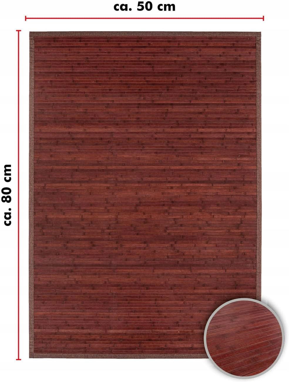 andiamo Dywan bambusowy, mata bambusowa do użytku na zewnątrz i wewnątrz, antypoślizgowy, 100% naturalny bambus, nadaje się jako chodnik i mata do jogi, kolor: czerwony, wymiary: 50 x 80 cm