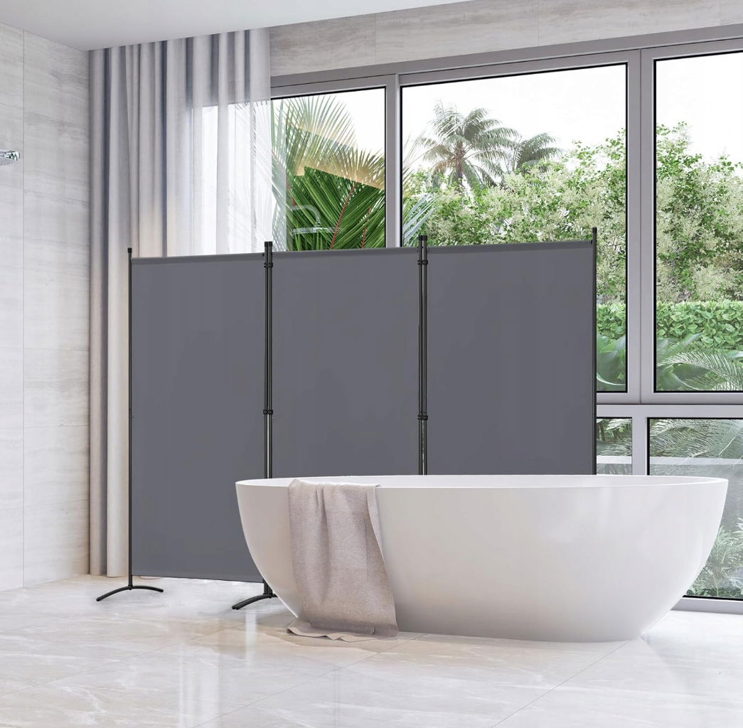 - ✴️ Materiał i wykonanie - Parawan wykonany z nieprzezroczystego poliestru o gramaturze 160 g/m² oraz ramy ze stali malowanej proszkowo. Materiał jest oddychający, przeznaczony do zapewnienia prywatności. Poszycie można zdjąć w celu czyszczenia lub prasowania parą.