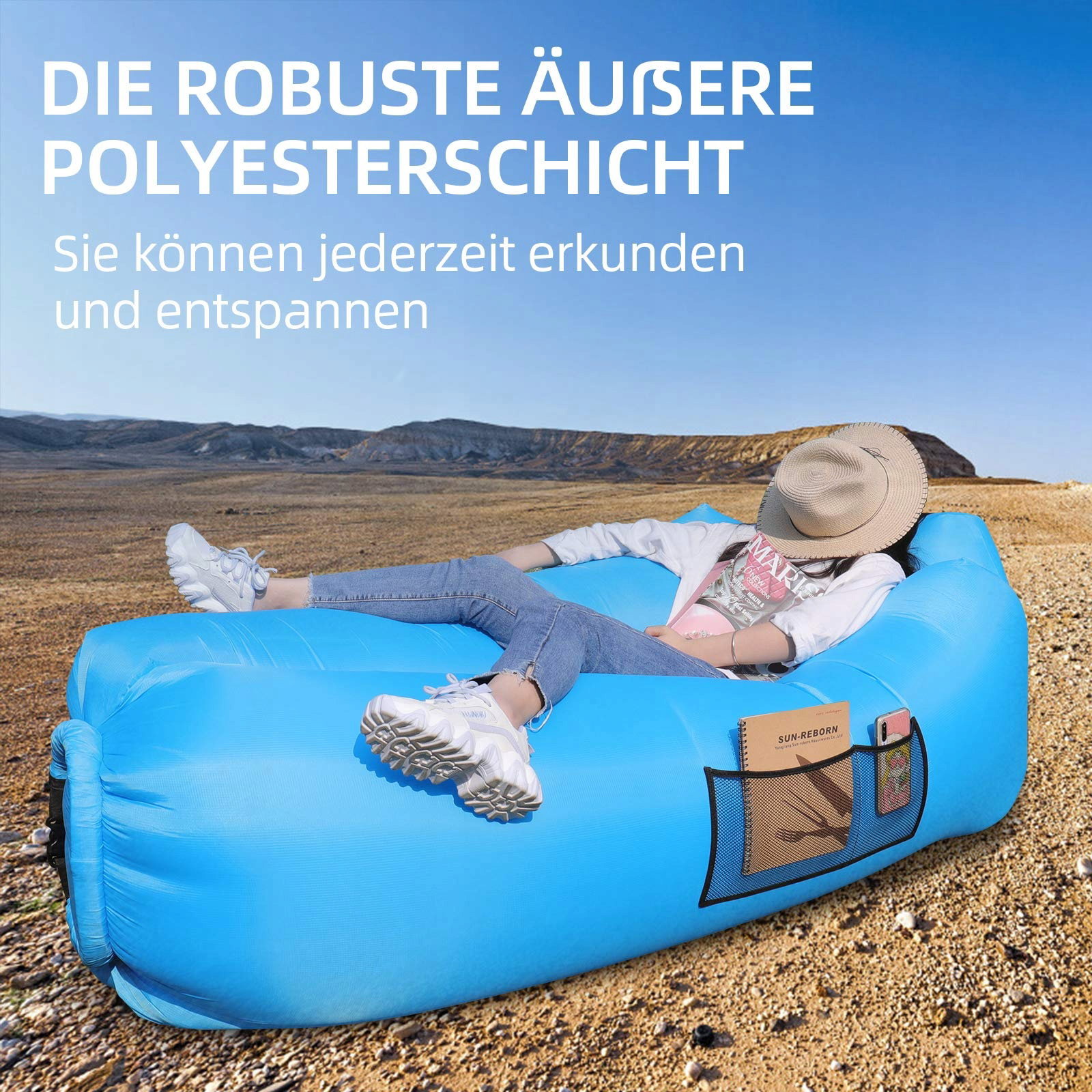 Zdejmowana tkanina Oxford 1000D + powłoka PCW - ta nadmuchiwana sofa jest wykonana z wysokiej jakości tkaniny Oxford 1000D o gładkiej, odpornej na rozdarcie powierzchni. Powierzchnia została również pokryta wodoodporną powłoką PCW, aby chronić ją przed brudem i zużyciem. Jeśli sofa kempingowa się zabrudzi, wystarczy ją zdjąć i wyprać w pralce, aby znów wyglądała jak nowa.