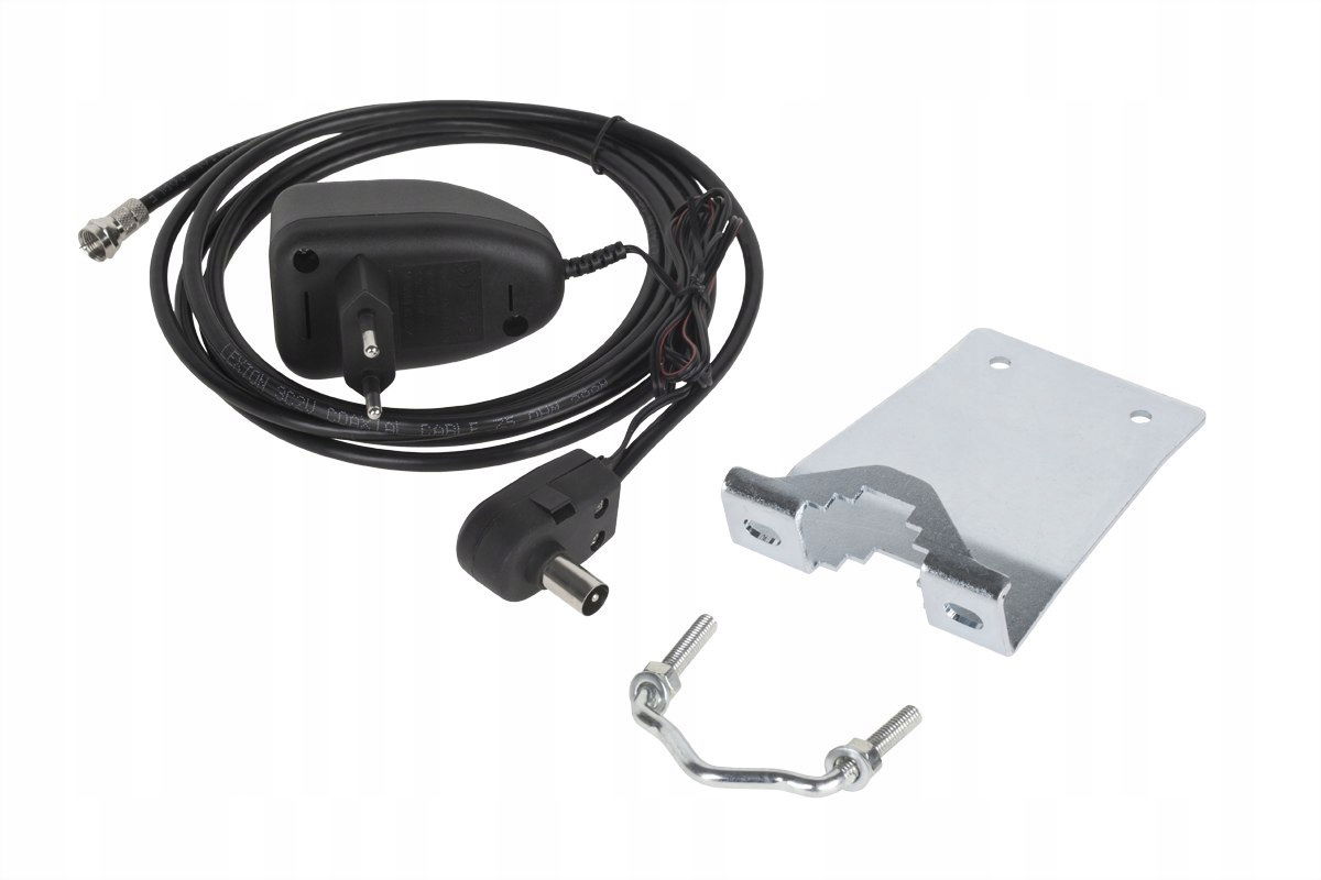 Standardowe wyposażenie anteny: wzmacniacz niskoszumowy, zasilacz, LED kontroli zasilania, podstawka, zestaw do montażu na słupie