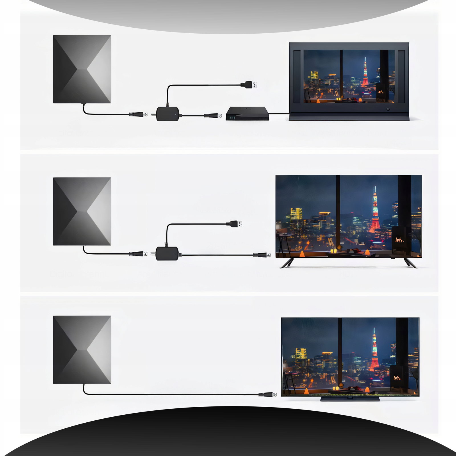 ANTENA TV WEWNĘTRZNA ZEWNĘTRZNA DC 5V UHV/VHV/FM MOCNY WZMACNIACZ HD 4K