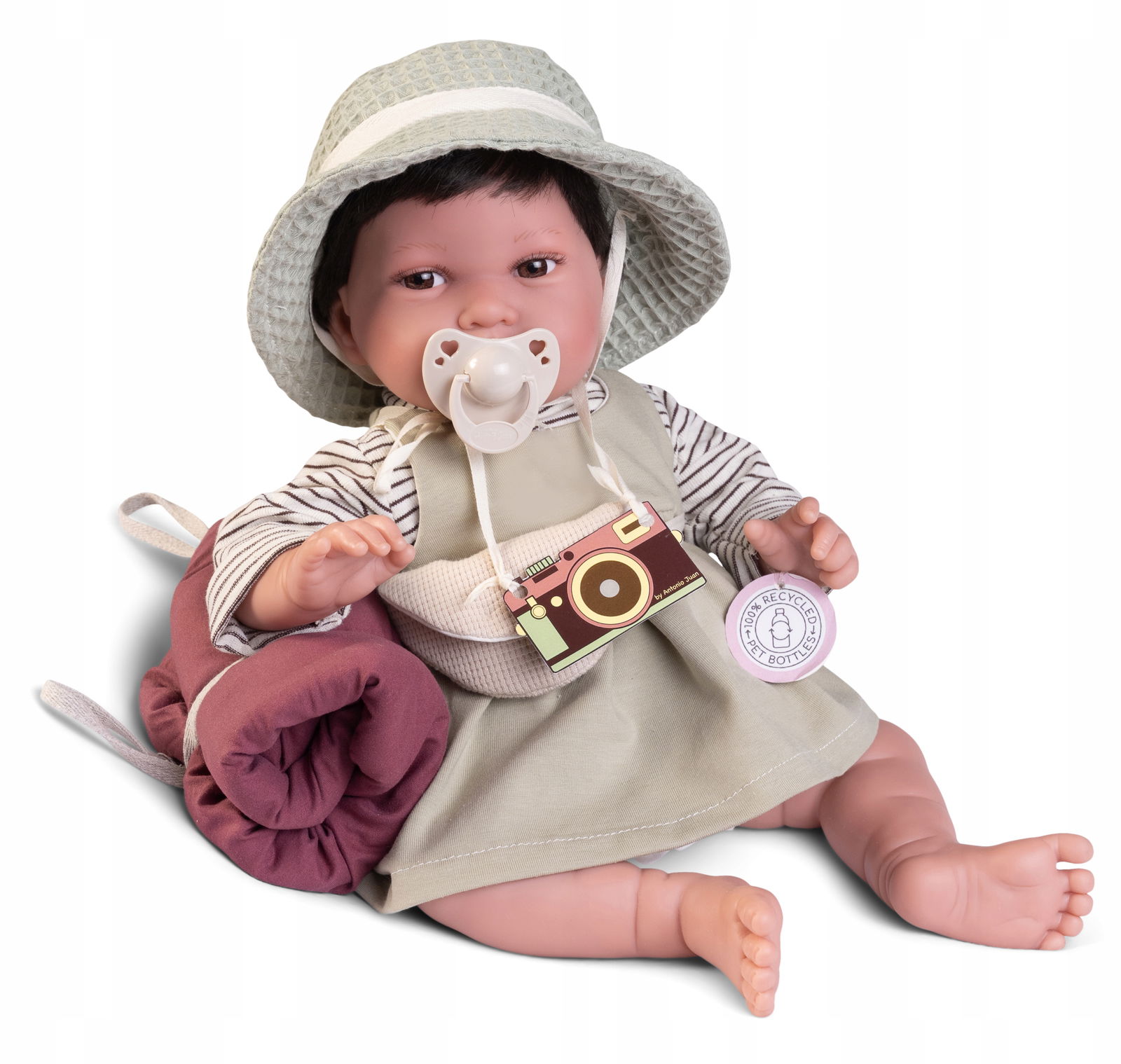 LALKA: PIPA ExploradoraNr katalogowy: 33364PIPA Exploradora jest bobasem ubranym w bluzeczkę,sukienkę i kapelusz . Ciekawym dodatkiem jest wiązana w talii mini torebka Bobas ma przepiękne, wyglądające jak prawdziwe oczka. Jest to laleczka z miękkim korpusem. Główka, rączki i nóżki laleczki wykonane zostały z najwyższej jakości delikatnego winylu. Rączki i nóżki można z łatwością przegiąć i ułożyć bobasa w różnych pozycjach. Lala nie siedzi samodzielnie, wymaga podparcia. PIPA Exploradora 33364 posiada:- bluzeczkę,- sukienkę,- majteczki,- kamizelkę,- zawiązywany kapelusz,- torebkę ,- śpiworek z miękką białą wyściółką,- smoczek z łańcuszkiem,- wydrukowany na gładkim kartoniku aparat fotograficzny zawieszony na miękkiej tasiemce,- oryginalny i elegancki firmowy kartonik. Wysokość lalki: 42 cmLaleczka zapakowana w oryginalny i elegancki kartonik.