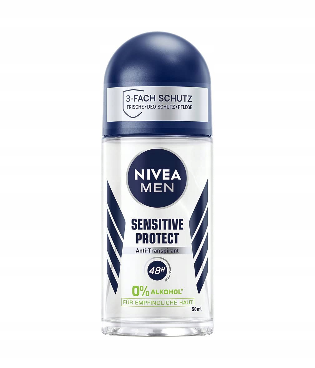 Nivea Men Sensitive Protect Antiperspirant Roll-on - 48 godzin ochrony bez podrażnienia skóry. Dezodorant typu roll-on Nivea Men Sensitive Protect dla skóry wrażliwej przekonuje jako skuteczny antyperspirant z 48-godzinną ochroną przed wilgocią pod pachami i nieprzyjemnymi zapachami ciała. Dzięki odżywczej formule z cennym ekstraktem z rumianku zapobiega się podrażnieniom skóry: chroni skórę i zapobiega podrażnieniom lub pieczeniu. W tym samym czasie wrażliwa skóra pod pachami jest karmiona kompleksem pielęgnacyjnym Nivea Men. Formuła nie zawiera alkoholu* a kompatybilność skóry jest potwierdzona dermatologicznie. Dla trwałej świeżości dla wrażliwej skóry z potrójną ochroną: Nivea Men Sensitive Protect Roll-On. Zastosowanie Zastosuj dezodorant męski pod pachą i pozostaw do całkowitego wyschnięcia. Zalety produktu w szczegółach: * 0% alkoholu*. * 48-godzinna ochrona dezodorantu przed wilgocią pod pachami i zapachem korpa * Z kompleksem opieki Nivea Men. * Potrójna ochrona: ze świeżością, ochroną dezodorantu i pielęgnacją. * Testowana dermatologicznie kompatybilność skóry. *Brak alkoholu etylowego.