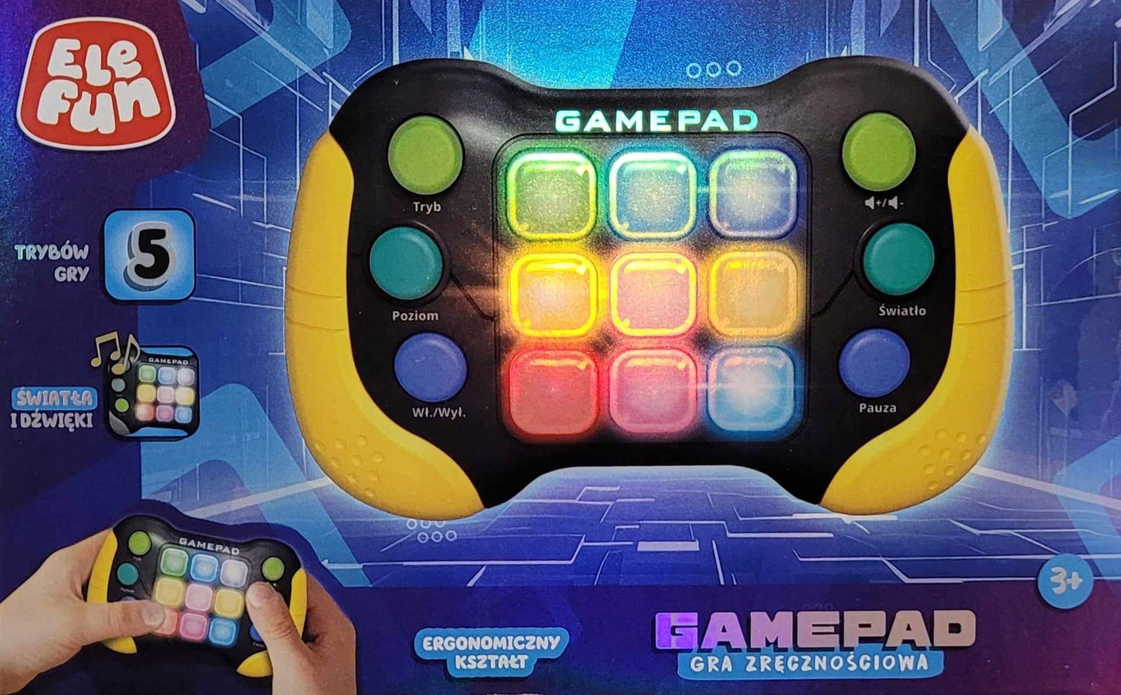 ANTYSTRESOWA GRA ZRĘCZNOŚCIOWA GAMEPAD 5 TRYBÓW ŚWIATŁO DŹWIĘK ELEFUN BLACK