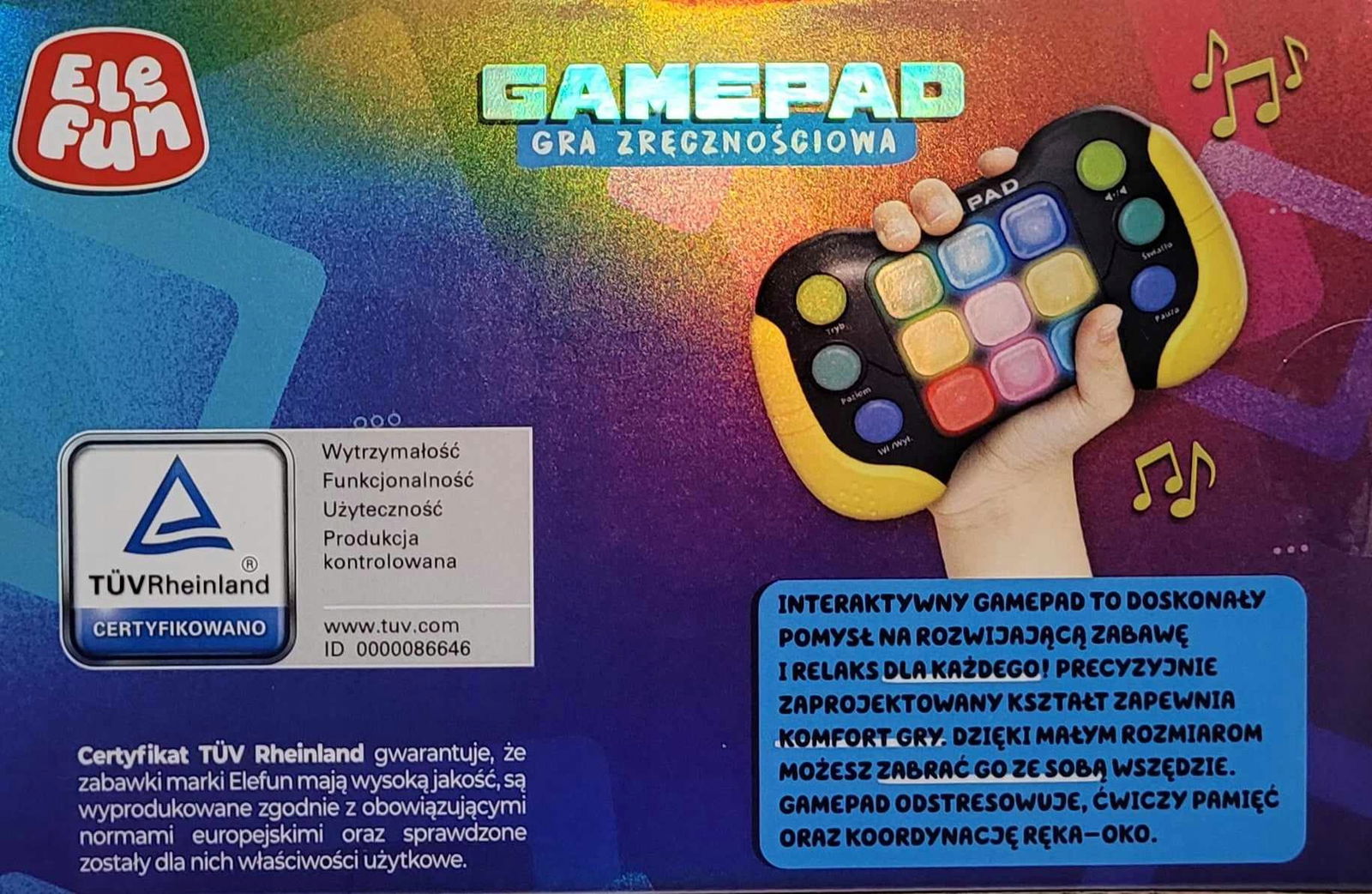 Interaktywny gamepad to doskonały pomysł na rozwijającą zabawę i relaks dla każdego! Precyzyjnie zaprojektowany kształt zapewnia komfort gry. Dzięki małym rozmiarom możesz zabrać go ze sobą wszędzie. Gamepad odświeża, ćwiczy pamięć oraz koordynację ręka-oko.