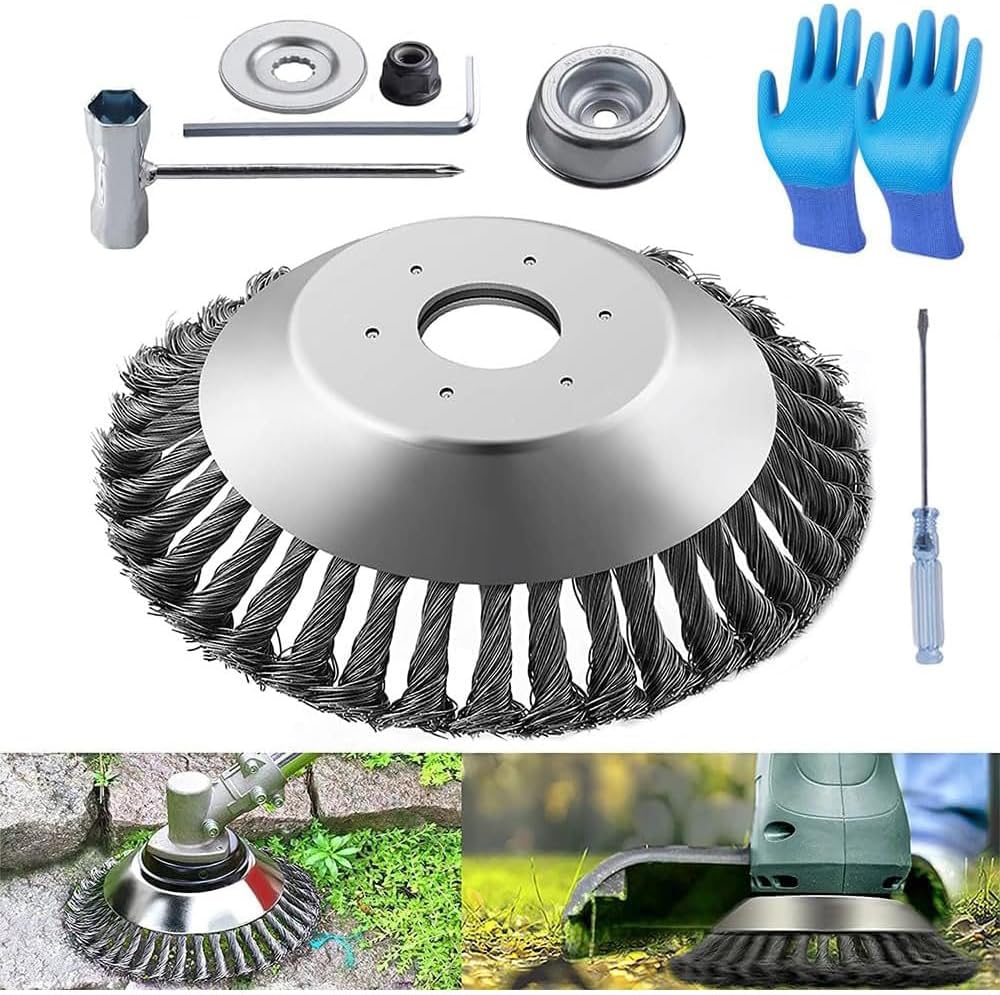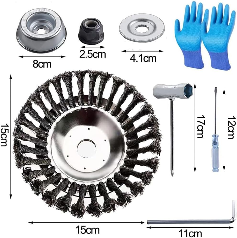 ⭐Idealne połączenie: zestaw szczotki do usuwania chwastów do podkaszarki z profesjonalnymi akcesoriami montażowymi, rękawicami, śrubokrętem, kluczem itp. Można z łatwością wymienić szczotkę do usuwania chwastów.