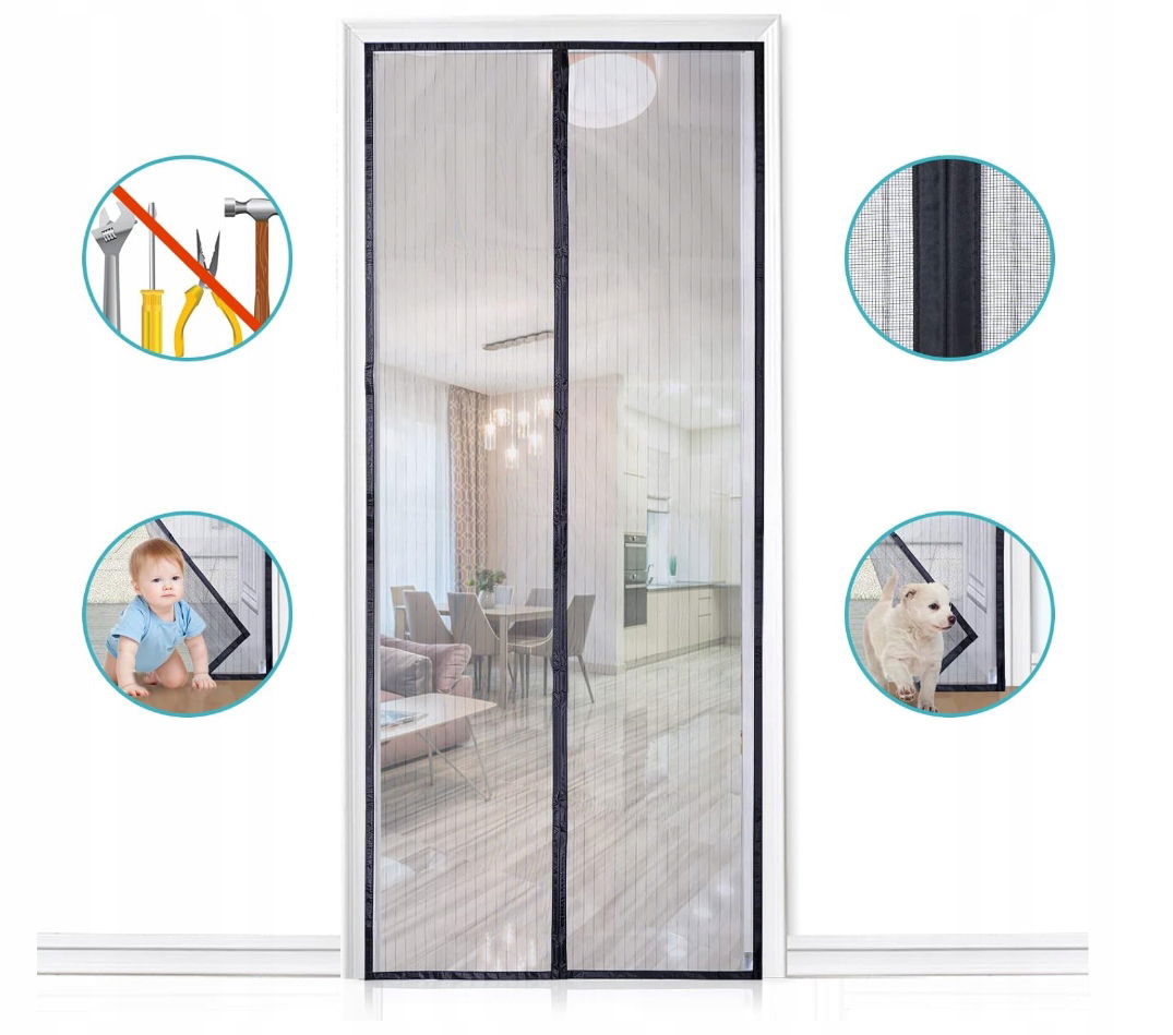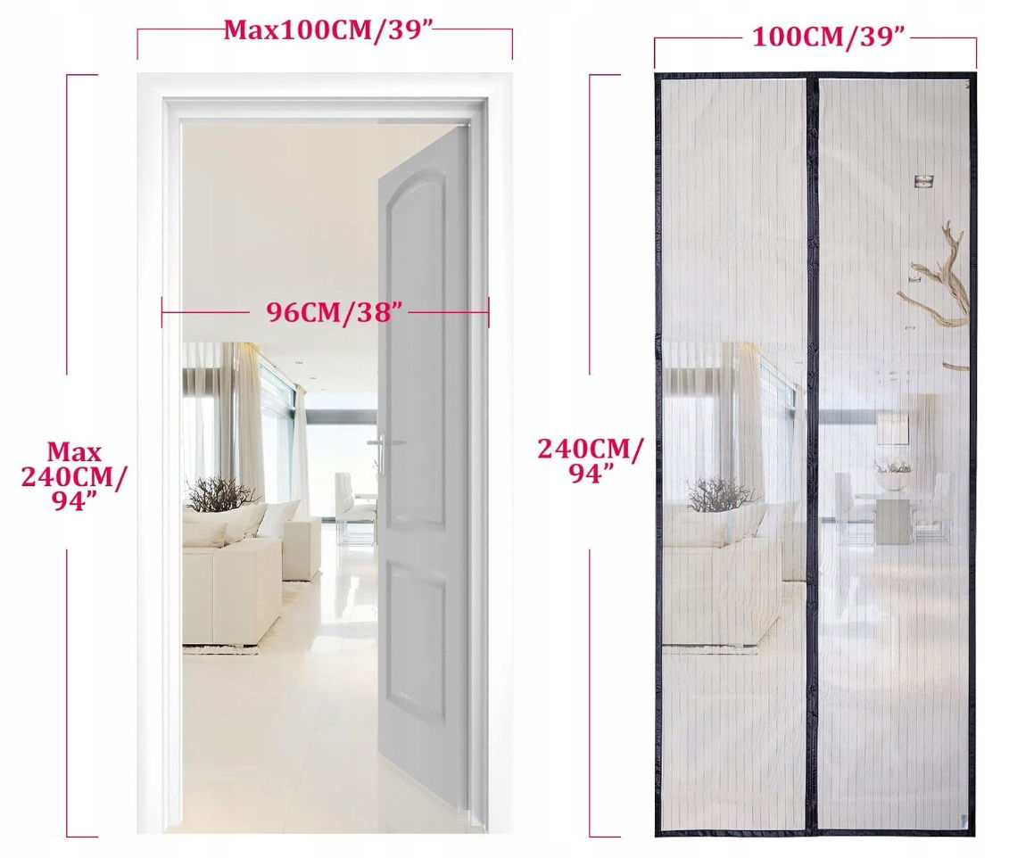 Apalus Drzwi z ekranem magnetycznym, zasłona siatkowa 240 x 100 cm