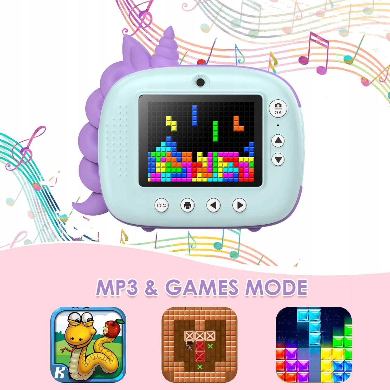 - [NAJLEPSZY PREZENT Z KAMERĄ DIY DLA DZIECI] Ten aparat dla dzieci to zarówno aparat cyfrowy, jak i aparat do natychmiastowego drukowania dla dzieci, który umożliwia dzieciom robienie kolorowych obrazów, nagrywanie filmów HD 1080p i drukowanie czarno-białych zdjęć. Co więcej, ta kamera do natychmiastowego druku jest również wyposażona w 3 naklejki z kreskówek, 5 kolorowych długopisów do samodzielnego wykonania, aby stymulować wyobraźnię i kreatywność dzieci. Zabawny prezent urodzinowy / bożonarodzeniowy / codzienny dla dzieci w wieku 3-14 lat.