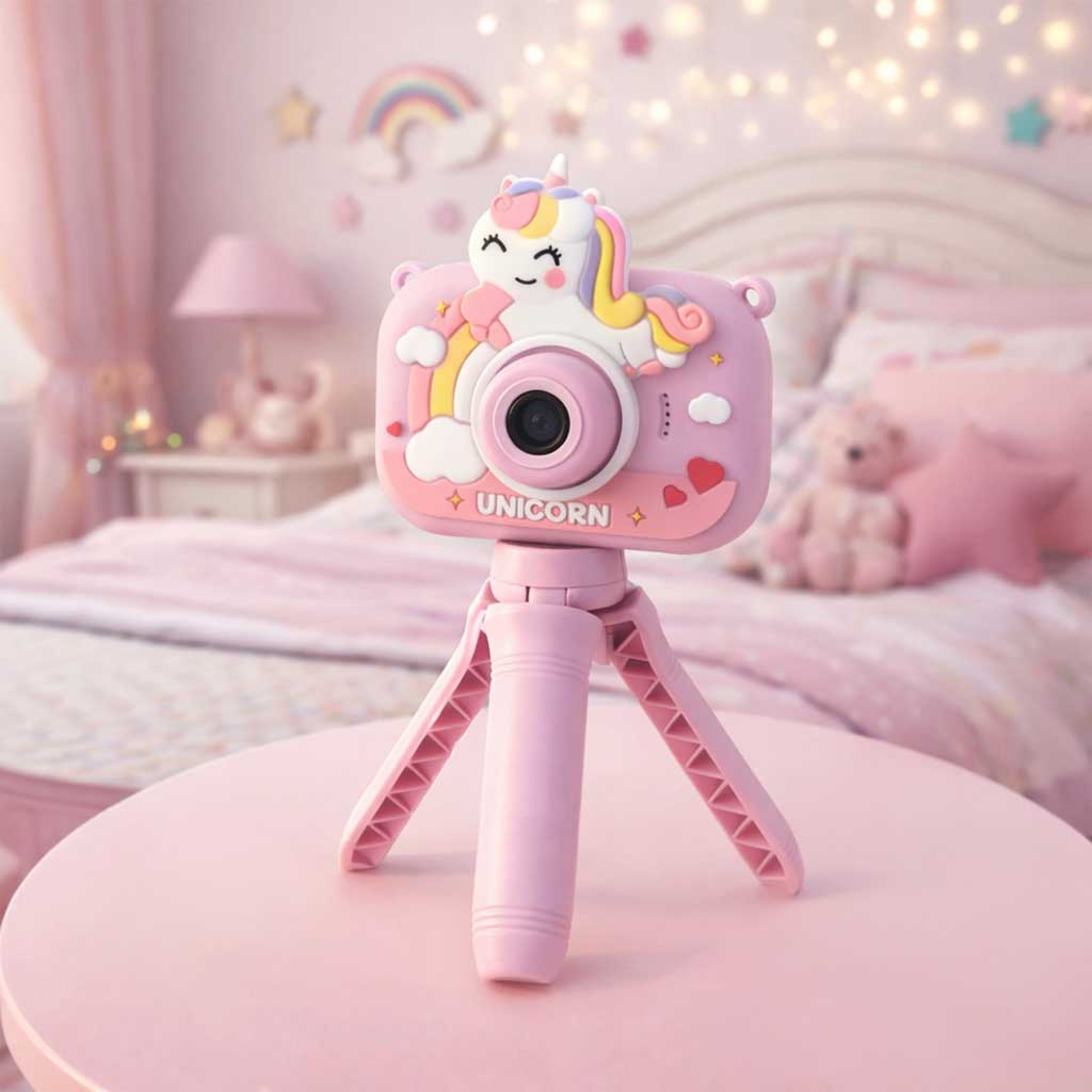 Aparat Cyfrowy Fotograficzny dla Dzieci na Statywie Kamera Gry Jednorożec