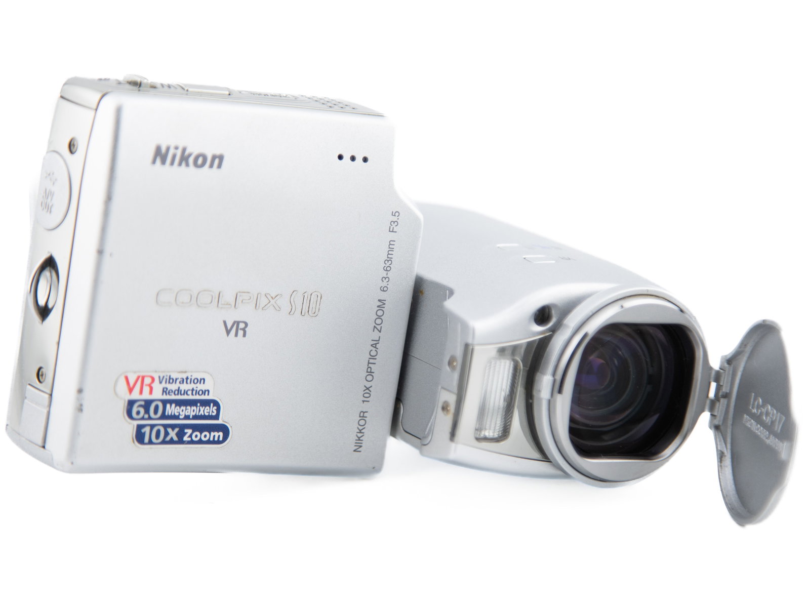 Nikon Coolpix S10 to unikalny aparat cyfrowy, który kontynuuje tradycję obrotowych konstrukcji Nikona, znanych z wcześniejszych serii takich jak Coolpix 950 czy 4500. Aparat składa się z dwóch głównych modułów połączonych przegubem: części z obiektywem oraz korpusu z ekranem LCD. Taka budowa pozwala na swobodne obracanie obiektywu w szerokim zakresie, co drastycznie ułatwia robienie autoportretów, fotografowanie nad głowami tłumu lub robienie zdjęć z perspektywy żaby bez konieczności kładzenia się na ziemi.