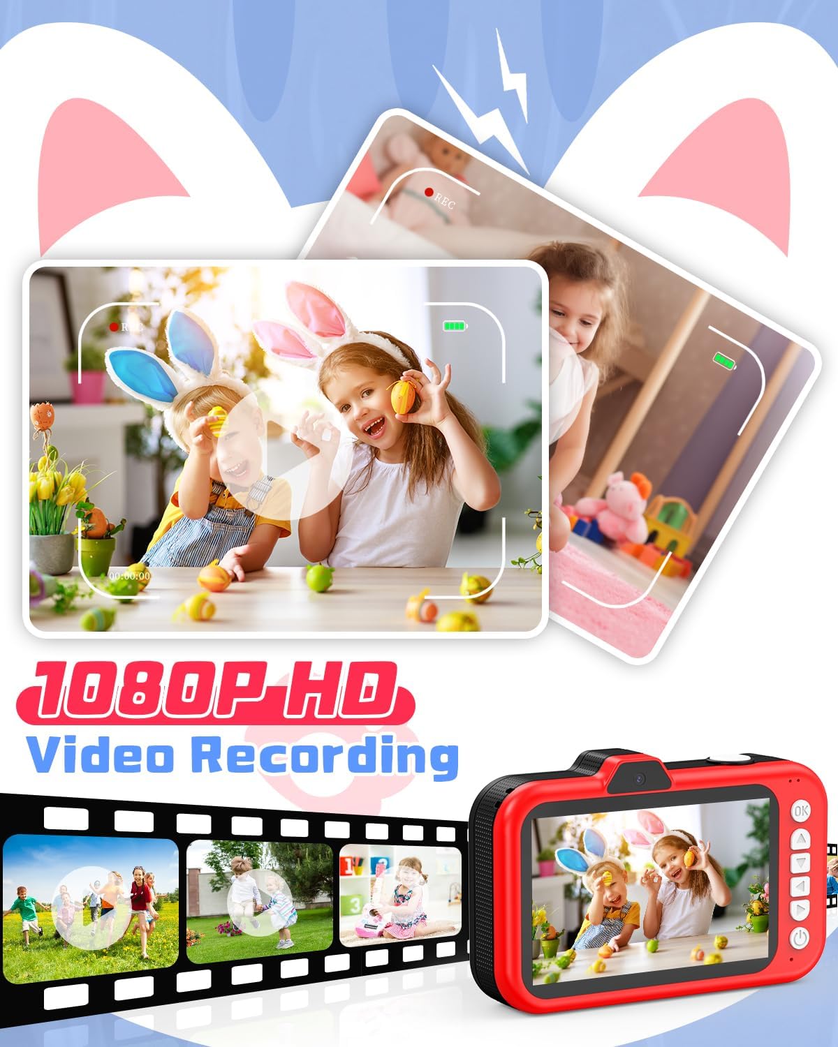 Aparat dziecięcy, Usteetic 3,5” Duży ekran 48 MP 1080 P Aparat cyfrowy dla dzieci z obrotowym obiektywem zmiennoogniskowym 360° Lampa błyskowa LED Prezent na Boże Narodzenie Zabawka dla 3 4 5 6 8 7 9 10-letnich chłopców Dziewczęta