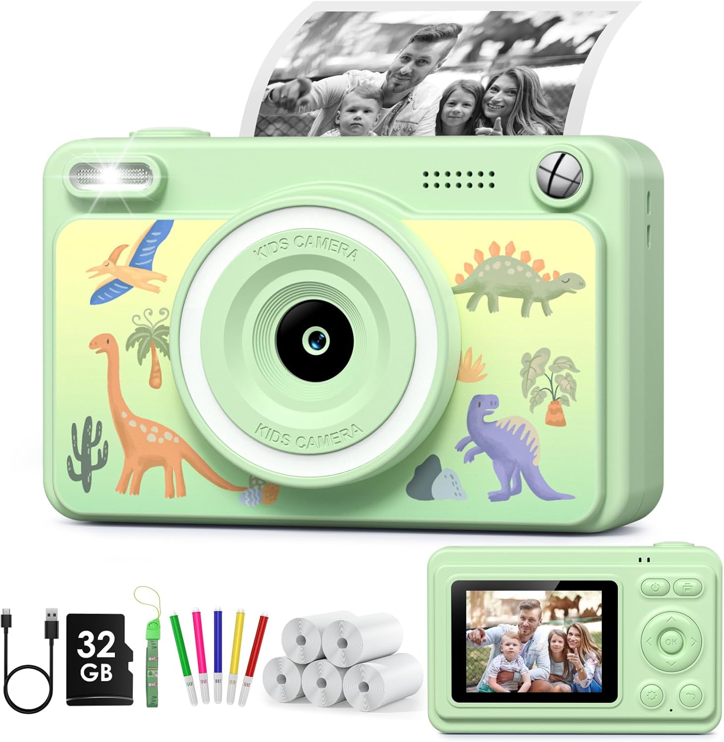 Aparat fotograficzny dla dzieci do natychmiastowych wydruków 1080P z 5 rolkami papieru i kartą 32 GB, dla małych chłopców, dziewczynek,wiek 3-12 lat