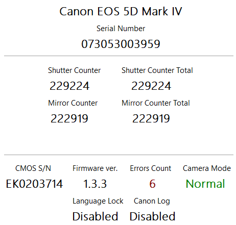 #️⃣ Aparat lustrzanka Canon EOS 5D Mark IV o numerze seryjnym 073053003959