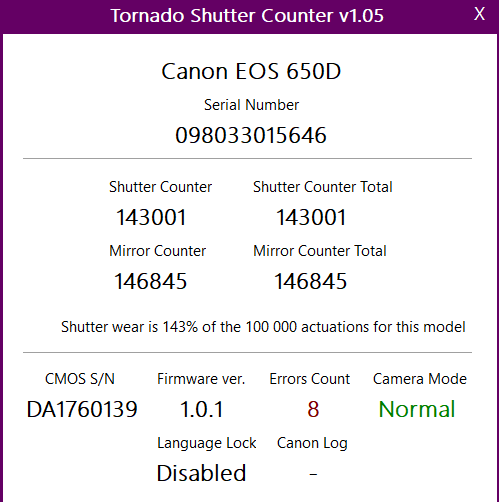 - Przebieg aparatu to 143001 zdjęć