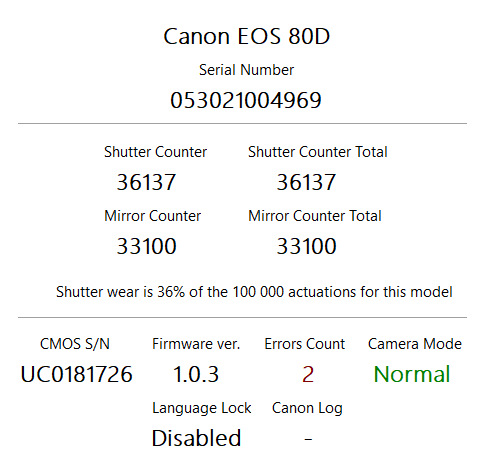 #️⃣ Aparat lustrzanka Canon 80D o numerze seryjnym 053021004969