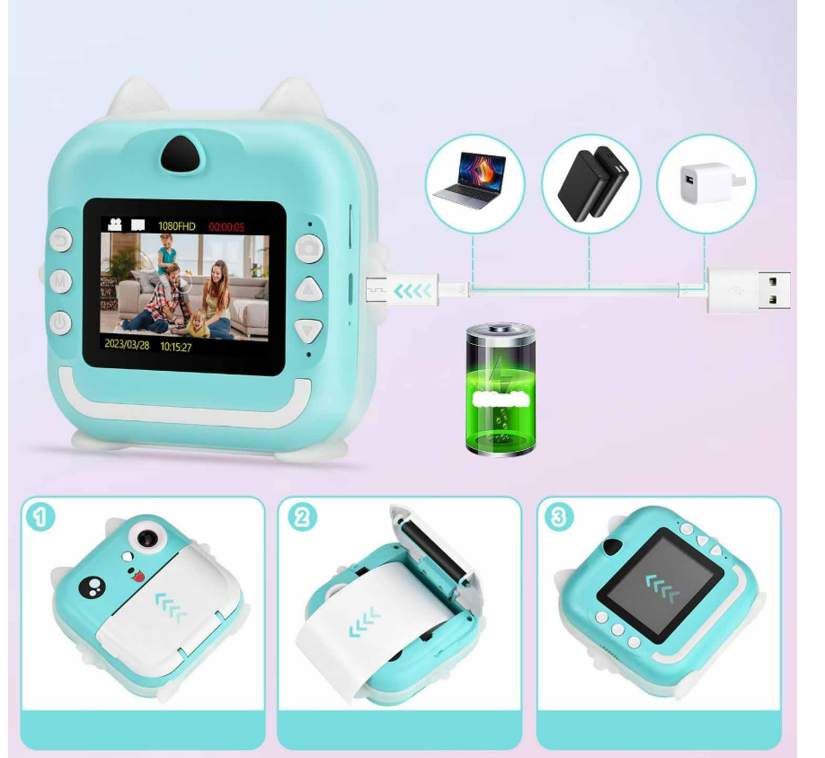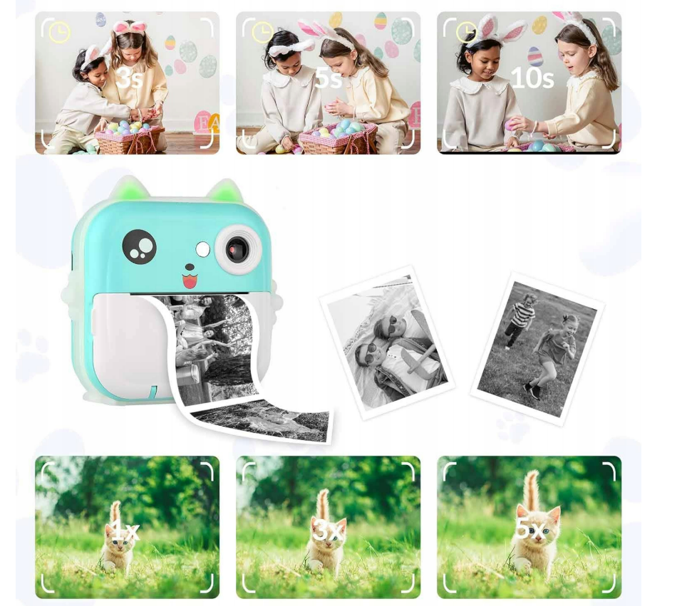 Aparat NATYCHMIASTOWY DLA DZIECI DLA DZIECI DRUKARKA TERMICZNA APLIKACJA