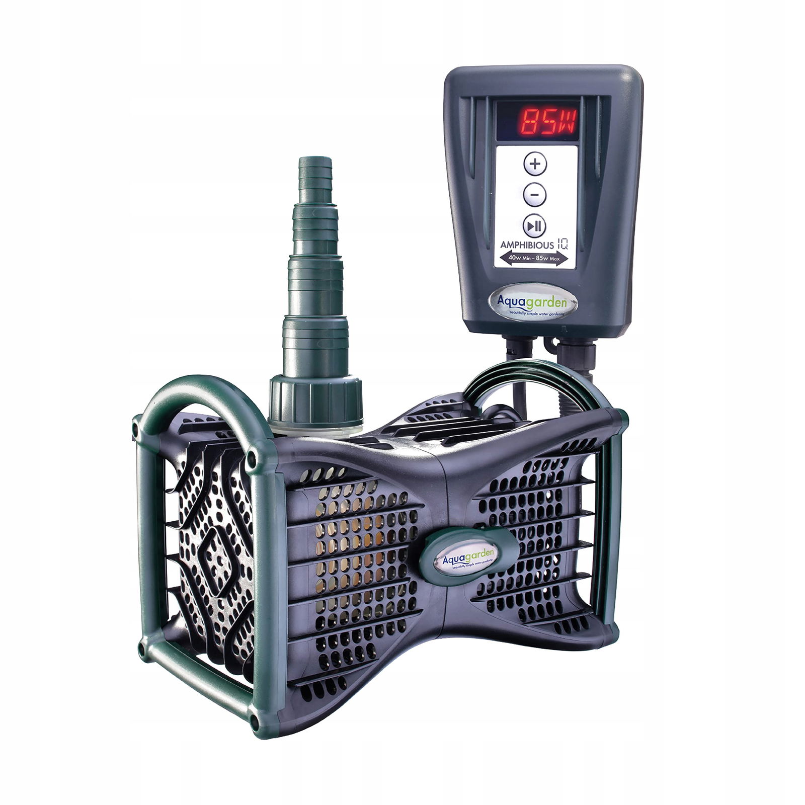SOFT START: Funkcja Soft-Start zwiększa ilość przepływu tylko stopniowo do ustawionej wartości. Zmniejsza to zużycie pompy i odciąża przewody wodne. Ochrona przed pracą na sucho: Jeśli silnik rozpozna, że poziom wody jest zbyt niski, pompa zatrzymuje się i emituje komunikat ostrzegawczy. Gdy poziom wody jest wystarczająco wysoki, pompa zostaje ponownie uruchomiona. Innowacyjny system ochrony silnika: System ochronny silnika rozpoznaje, czy pompa jest zatkana czy zablokowana, a także wyświetla ostrzeżenie ze wskazówkami dotyczącymi rozwiązywania problemu. Elastyczne wykorzystanie energii: W zależności od potrzeb można elastycznie zwiększyć lub zmniejszyć ilość przepływu. Niski czas pielęgnacji i oszczędność energii: Nadaje się do bieżących wodospadów, fontann i filtrów. Silnik o wysokiej wydajności można dopasować za pomocą cyfrowego pilota zdalnego sterowania.